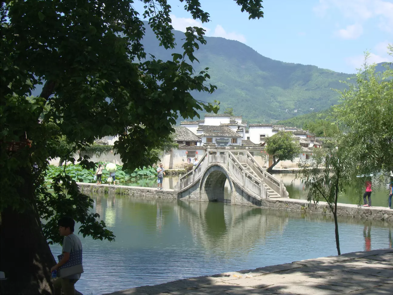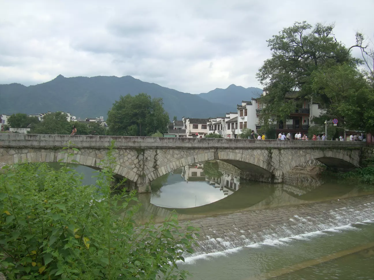 连接宏村内外的一座多跨石拱桥(安徽省黟县;本人摄于2013年7月) 下承式桁架拱吊桥