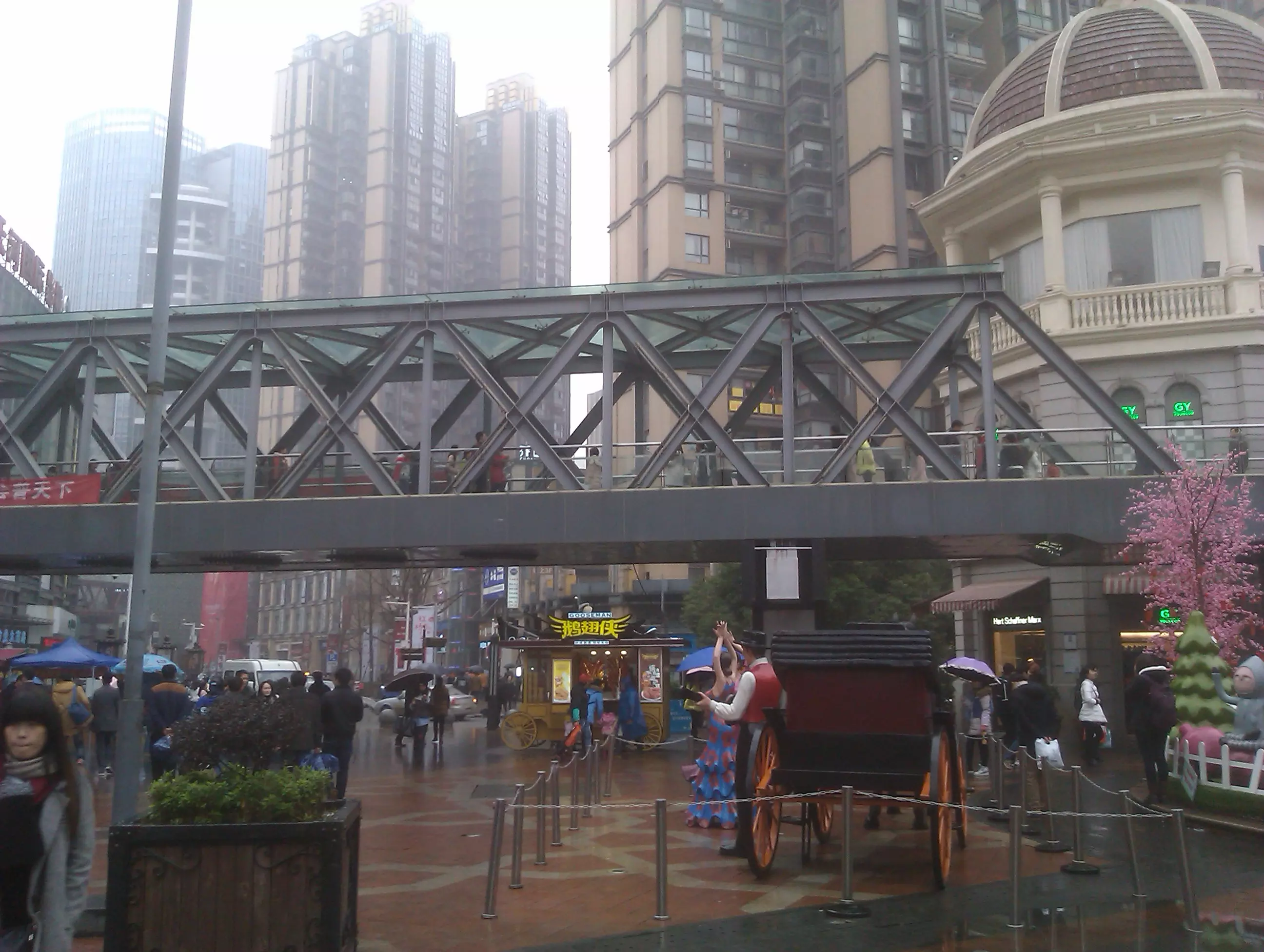 中南路丁字路口的人行天桥(湖北省,武汉市;本人摄于2016.01) 中承式桁架拱吊桥