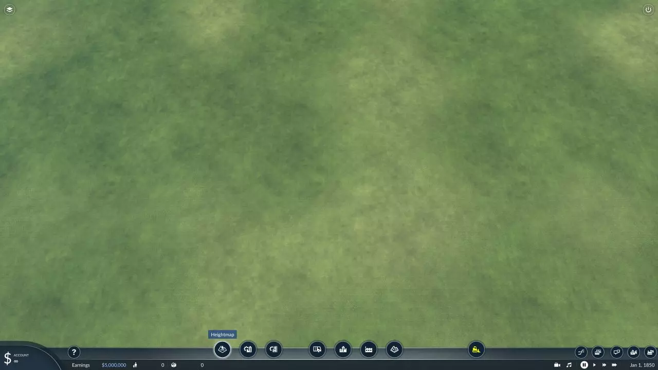 现在你应该处于地图编辑器中,在底部的主工具栏里,第一个按钮名为高度图,图标是一个带有向下箭头的山形符号。