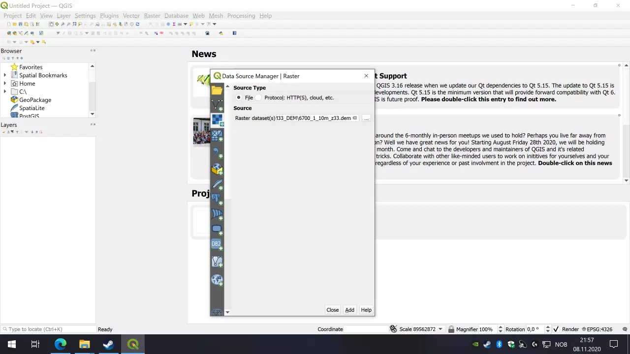 《狂热运输2》对地图编辑的支持有所提升,但如果想要制作自定义地图,获取高度图文件仍然十分繁琐。首先,获取高质量的图像本身就很困难,其次,图像必须是16位纯灰度PNG格式,而支持或能轻松创建这种格式的软件并不多。 在本指南中,我将尝试帮助你利用GIS数据,根据现实世界中的某个地点创建自己的高质量地图。我花了很多时间去理解和弄清楚如何实现这一点。其实这并不太难,只是你需要知道该怎么做。 所需工具 完成本指南需要满足一些条件。我们将使用的软件是QGIS和GIMP。你需要拥有【狂热运输2】 你需要安装QGIS来处理高程数据。我使用的是3.16版本,这是目前最新的版本,但你也可以使用其他版本完成操作。 为了使高度图与【狂热运输2】兼容,你还需要安装GIMP。最低版本应为2.10。 你需要获取你想要创建地图区域的DEM文件(或QGIS支持的其他地形格式文件)。有许多网站可以下载这类文件,其中很多是免费的,也有一些需要付费。如果你想覆盖更大的区域,或者拥有高分辨率数据但缺少水下高度数据,QGIS也能够合并多个文件。在本指南中,我使用了由Kartverket/Geonorge提供的挪威文件。 除了QGIS和GIMP外,还有其他可用软件。 1. QGIS 完成要求后,打开QGIS。你应该会看到这样的欢迎窗口:
