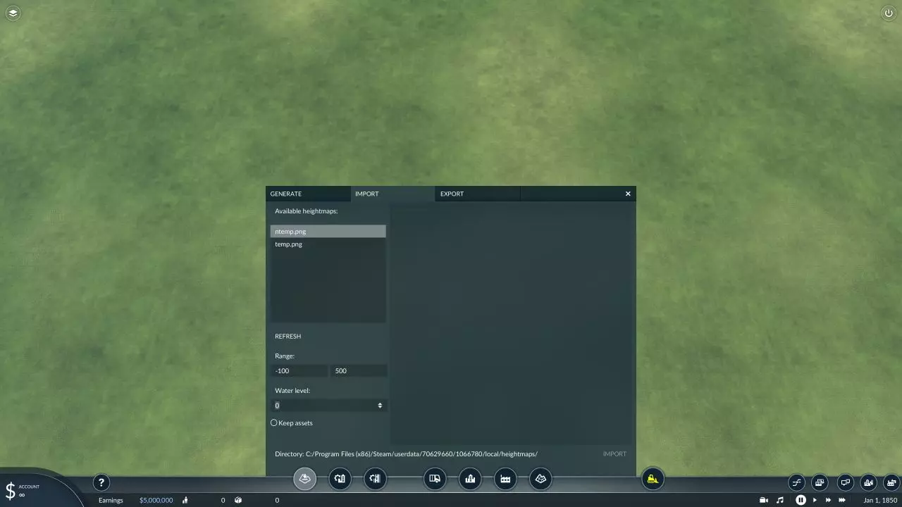 然后点击【导出】,之后你可以关闭GIMP(如果你想的话)。记住你保存新.png文件的位置。 3. 在《狂热运输2》中使用高度图 打开《狂热运输2》并选择【地图编辑器】。