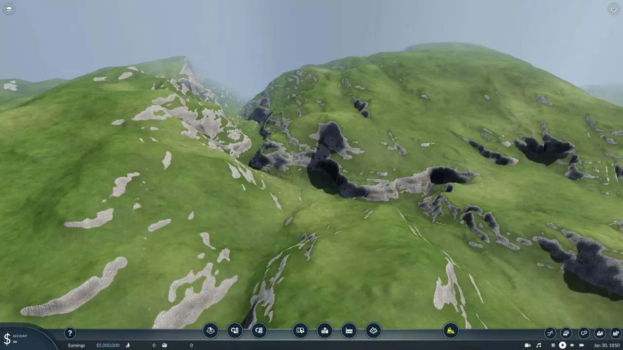 关于水和水位的最后几点说明。《狂热运输2》仅支持一种水位,通常设为平均海平面。对于地势较高的水域,无法将其真正用作水域,尽管可以使用模组创建视觉上类似的效果,但无法在上面行驶船只。此外,高程数据中往往缺少水下数据,这会以多种方式表现出来,具体取决于其实现方式,通常会导致海域非常浅。有几种解决方法:一是在QGIS中添加更多数据;二是使用游戏内的地图编辑器手动修复水域;或者如果影响不大,也可以保持原样。 至于高程数据本身,游戏中存在一些限制。最大高度为3176米,最低高度为-100米。如果地形存在高于最大高度的部分,这里有几个处理选项。一是直接裁剪,即所有高于最大高度的部分都设为3176米。二是压缩处理,将最高处设为3176米,但地形会因此变得更平缓。如果地形的最低点高于0米,例如1500米,你可以将其设为最低基准,然后据此调整高度。 总之,最后一步是点击【导入】按钮,让游戏自动处理。这个过程可能需要一些时间! 希望处理后的地形看起来比完全平坦要好,就像弗洛姆铁路起点的俯视图那样。现在是时候铺设轨道、道路和建造房屋了。如果你面对的是多山和山地地形,就别指望能轻松盈利!