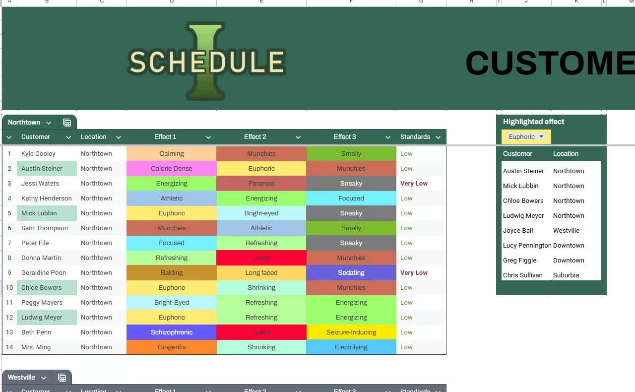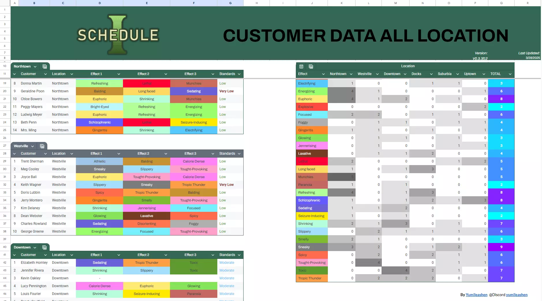 由Rainstorm Groups制作的另一份表格,按顾客喜爱的效果进行分类,目前涵盖北镇、西镇、市中心和码头区域。郊区和住宅区的数据即将更新!查看此表格可更轻松地找到合适的匹配对象。