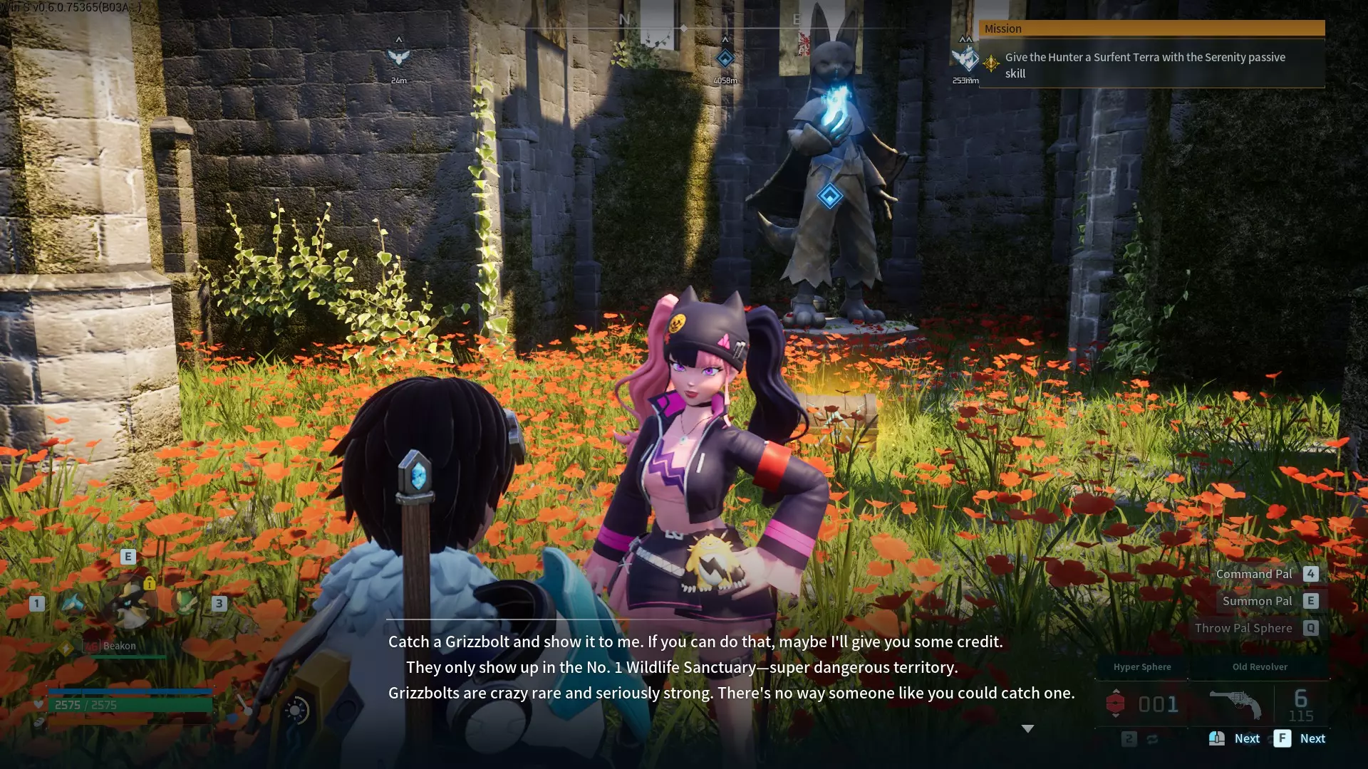 第四步:两种可能性 A. 前往1号野生动物保护区,那里可能会刷新Grizzbolt。此步骤的问题在于,搜索并让Grizzbolt刷新需要花费大量时间和精力,其出现概率低于0.5%,因此极难找到。此外,正如该地点名称所示,玩家进入保护区属于 trespassing,必须小心谨慎。如果被发现,PIDF 官员会追捕你。如果希望留在里面并躲避 PIDF 的 detection,可以尝试离开该区域后重新进入,以促使其刷新。如果找到Grizzbolt,使用Giga Sphere或更高级别的精灵球捕捉它。 B.这是我推荐的步骤,能减少寻找【Grizzbolt】的麻烦,但仍需花费一些时间和精力。不过你需要准备以下物品: - 孵化器(普通或电动) - 繁殖站 - 繁殖站用蛋糕 - 【Mossanda Pal】 - 【Rayhound Pal】