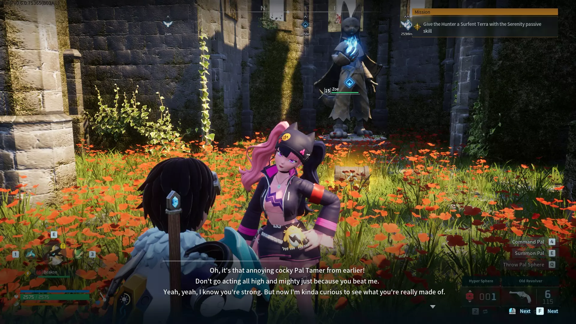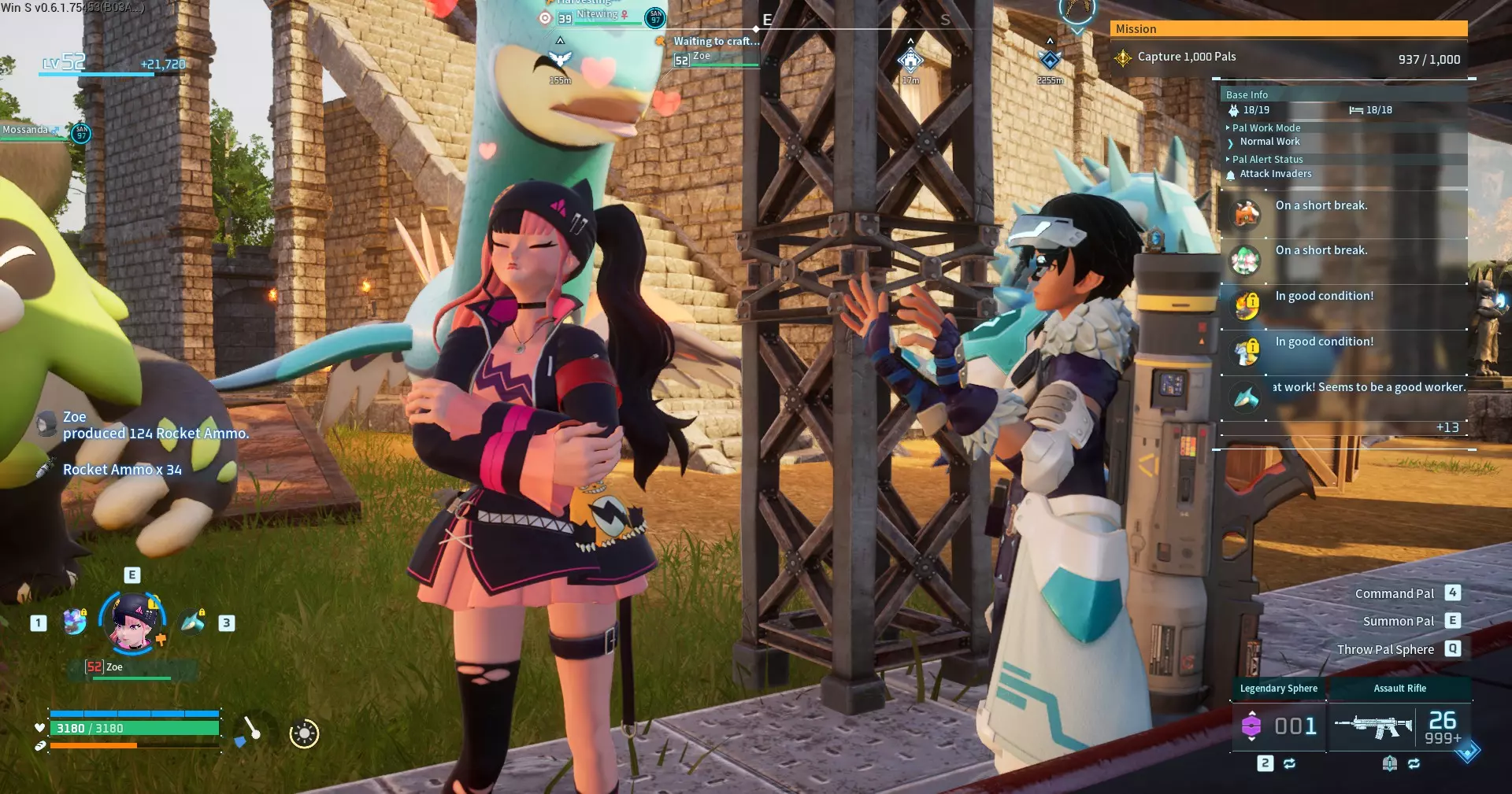 第10步:捕获佐伊·雷恩后,她会出现在你的帕鲁箱中,或者可能已在你的队伍里。召唤她后,她将使用强大的突击步枪在你身边战斗,而且令人惊讶的是……她和帕鲁一样可以学习技能,所以给她装备强力技能吧!