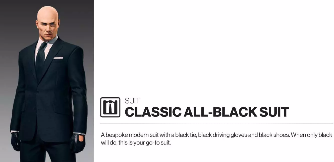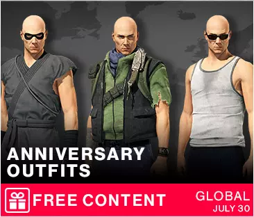 遗产与奖励物品 警告:由于《杀手》和《杀手2》已不再在Steam上销售,自2023年1月起,部分物品已无法获取。这些物品也无法通过游戏内挑战获得。 周年纪念服装系列(需注册ioi账户)(2019年7月30日推出):自由幻影西装、林奇西装、福特西装。注册ioi账户可获得3套游戏内西装以及《代号47:杀手的诞生》数字版第一期。
