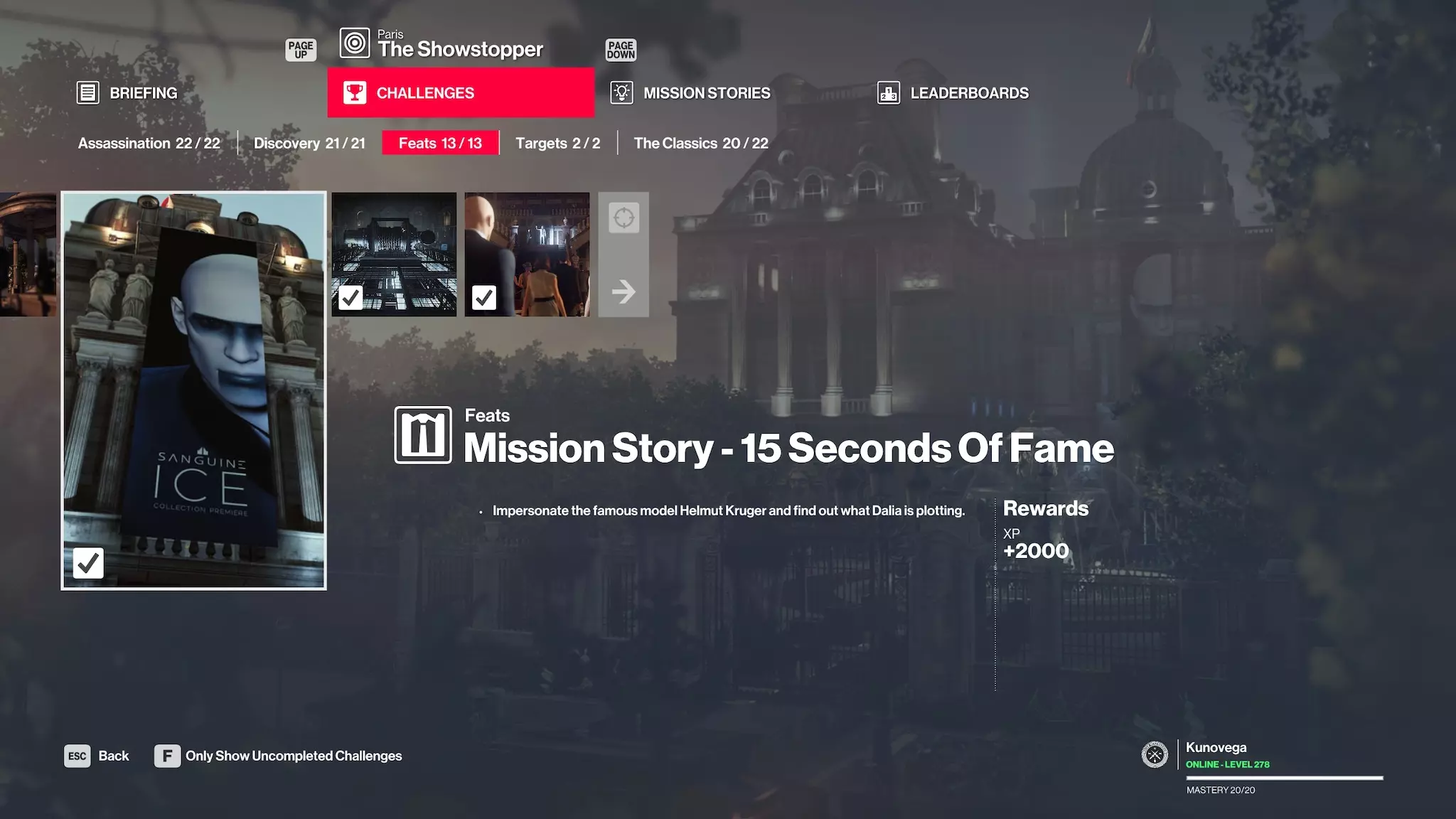 这是一项挑战,要求你完成巴黎的所有3个任务故事挑战。