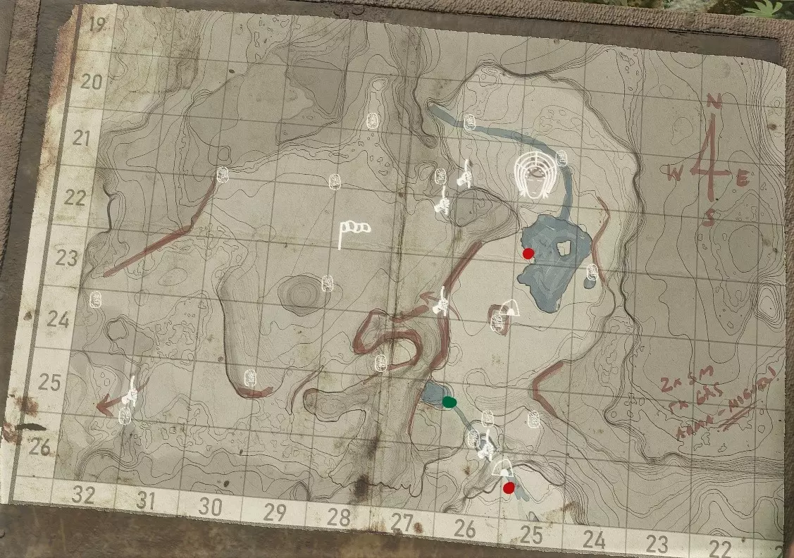 《绿色地狱》“亚马逊之魂第三章”传说任务第三指南。+关于最终章节的主要信息。【注意剧透!】 前言。 欢迎来到“亚马逊之魂第三章”。第三部分的传说任务需要在《绿色地狱》“亚马逊之魂”的2-3-4号地图上完成(是不是很惊讶?)。传说任务需要向《绿色地狱》“亚马逊之魂”3号地图的首领提交。 如果不想破坏游戏体验——可以自己探索所有内容。本指南适用于不想浪费时间的玩家。 那么,如何进入这个再次更新的旧区域呢? 最初只能从第二张地图进入,具体位置在这里(先别急着往那跑,稍后会说明原因):