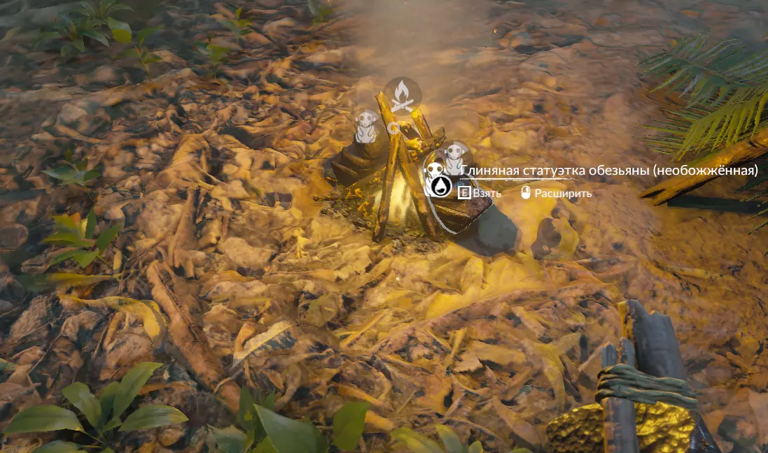 往里面加水,放入陶土模具。不要放铁,用不上。 制作3个陶土猴子雕像(在陶轮上)。然后在任意篝火旁烧制它们。