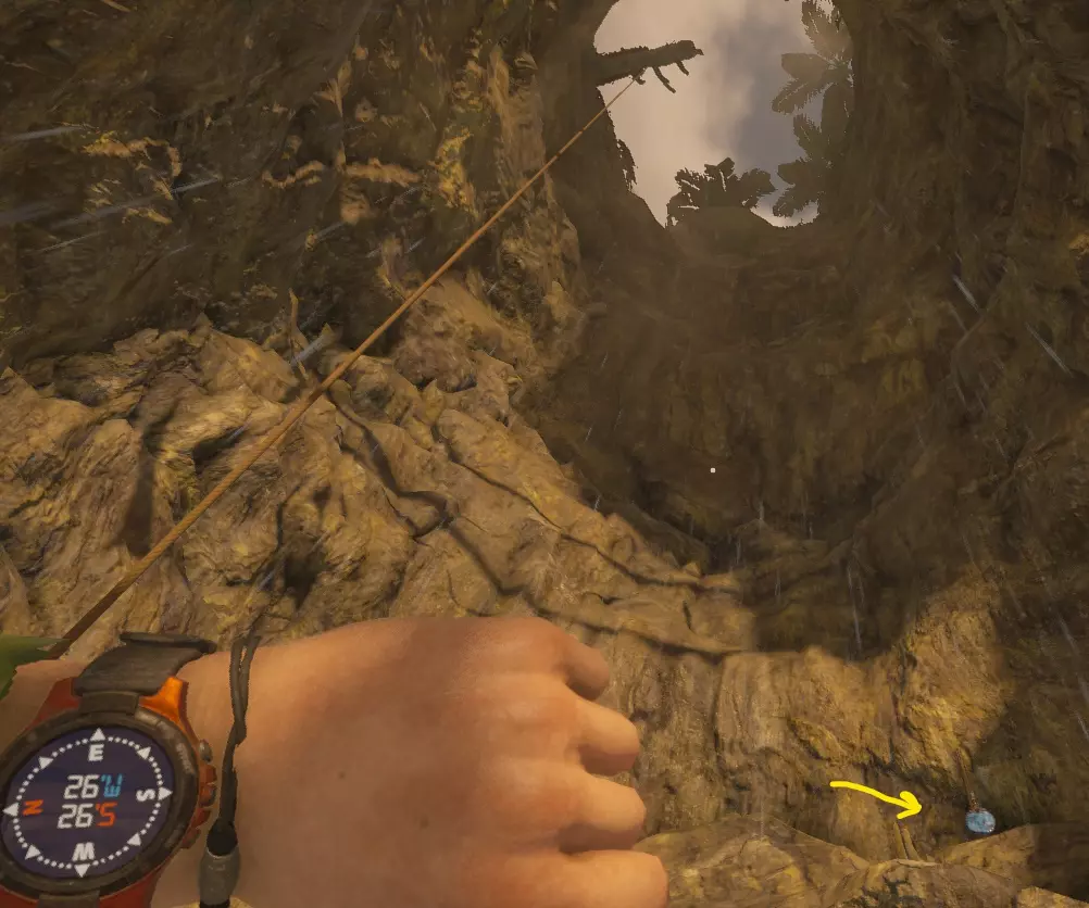 顺着绳索下去。 下去后,贴着左边的岩壁走,直到找到村庄。