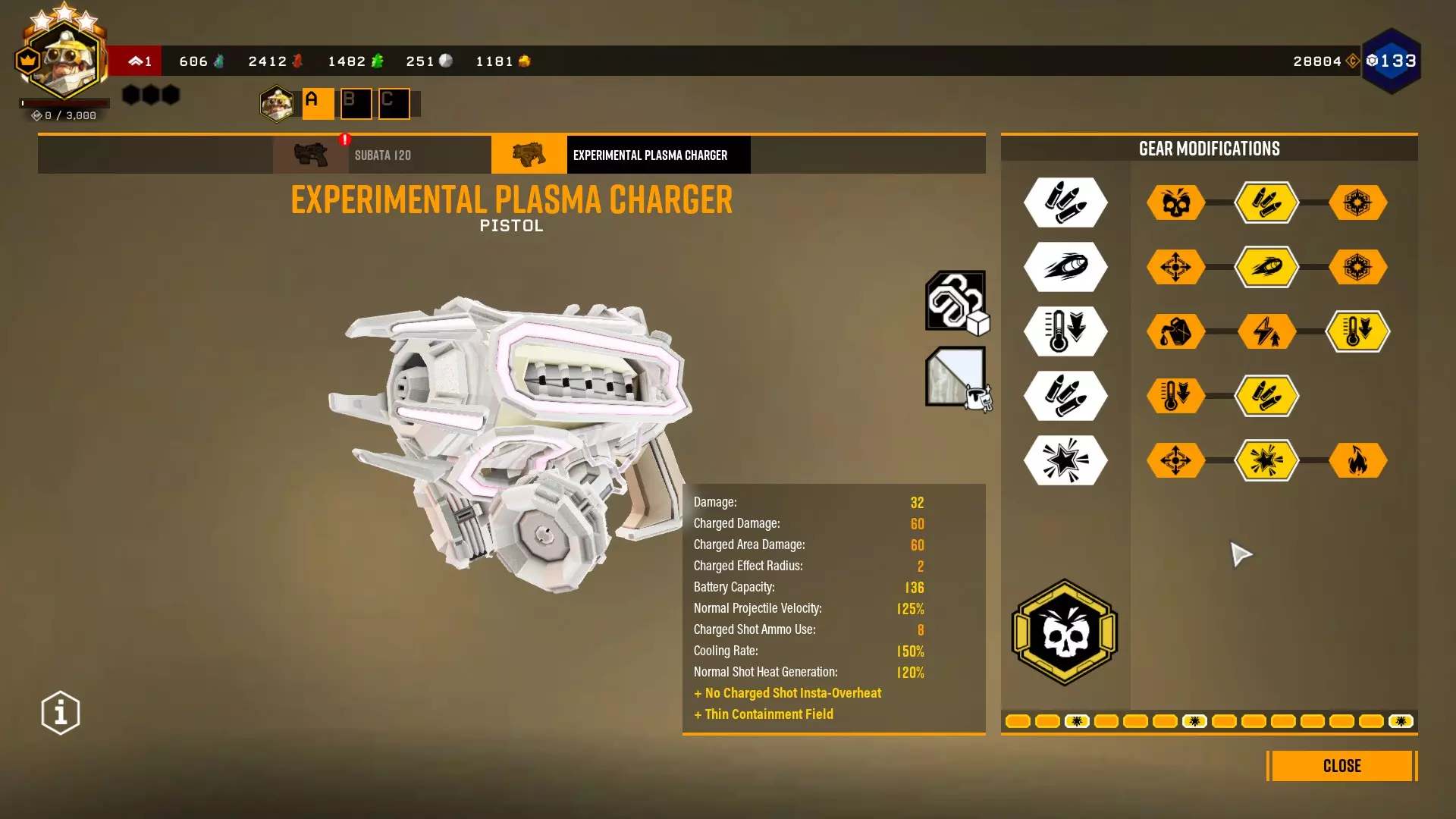 补充说明:在最近的更新中,开发者增加了冷冻枪的弹药量。在这种情况下,即使没有超频,该配装也能使用——只需将第四个强化“大型备用弹仓”替换为“+1冰冻值”。关键是要保持冰冻值≥9。 等离子手枪 与加农炮搭配使用时,手枪仅用于辅助射击。不过我们还是需要谨慎一些——队友可能不在身边,我们必须能够在目标解冻之前独自击败它们。因此,每秒伤害(DPS)对我们来说至关重要。 为了达到所需的伤害,使用等离子手枪,并将其升级以提升普通弹药的伤害(不需要切换到火焰喷射模式)。这能让我们非常快速地击败精英敌人和普通敌人。只有配备自动射击超频的Subata才能提供相当(甚至更高)的每秒伤害,但这种配置下弹药会严重不足。更大的弹匣可增加24发普通子弹。当然可以进一步提升伤害,但32点伤害已经足够一击击杀中型虫子和处理掠夺者。额外的弹药能让你总体消灭更多敌人; 等离子加速器过载:提高弹丸速度,便于攻击远距离目标; 散热器优化:可在过热前发射更多弹药; 高密度电池:额外增加24发弹药; 薄型约束场:同样有助于避免过热; 超频:强力增益,大幅提升弹药伤害。对大型目标的伤害输出提升,而小型敌人甚至会被一击击溃。