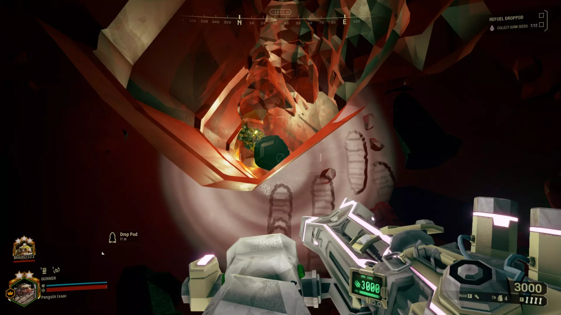 如果你之前玩过钻探机,那肯定试过在墙上钻个小隧道来躲避虫潮。在5级难度下,这种操作往往会导致全队团灭,因为没有准备好撤退路线的话,虫群会毫不留情。不过,如果有冷冻枪,单向隧道就会成为一种可行的应对方案,而不是全队的坟墓。最重要的是留意你的弹药数量和油箱中的燃油,因为如果出现引爆装置,你就必须在加纳尔用盾牌拖延它的时间里紧急挖掘额外的隧道。如果附近没有天然的双向隧道,可以使用这种战术。垂直防御:如果队伍中没有工程师,而任务是守卫黑匣子或救援驮兽(即如果要防御通信设备和燃料舱,可以使用钻机将设备向下放置。这样就能形成一个单向的隧道防御,但方向是从下往上。同时,在下方准备一个小平台,让团队所有矮人都能站在上面。为了撤退,建议提前挖掘部分隧道,但不要挖到底,这样怪物就只会从一侧出现。不要把废料隧道的预备通道建得太长,否则怪物会直接在里面生成。 这种战术适合3人或4人小队使用,因为这种情况下怪物数量相当多。如果只有两人,使用HZ5和这些构筑应该能靠自己应对。 这种防御方式的缺点是背甲怪。在你杀死它们之前,它们可能会造成相当多的伤害。装备 breach cutter(破片切割器)的工程师能彻底解决问题。 重要提示:在向下挖掘前,务必检查你的弹药量! 注意事项:黑箱和通信节点可以直接站在上面向下钻探使其掉落。但燃料罐无法使用这种技巧,需要另外想办法处理。