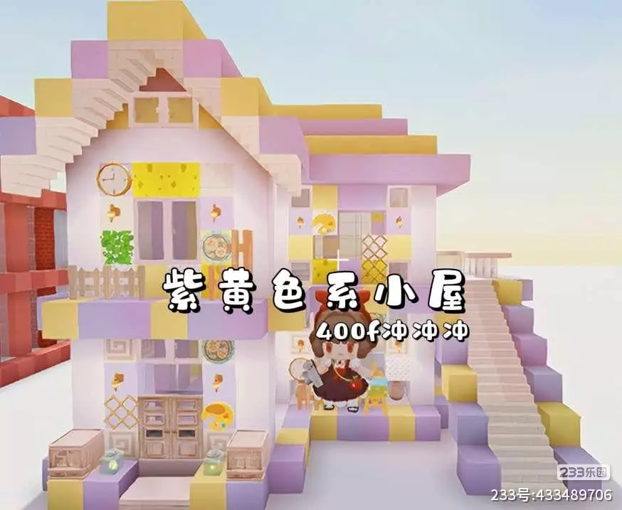 【紫黄色系小屋】迷你建筑 文案“心往前走,总会看到光”