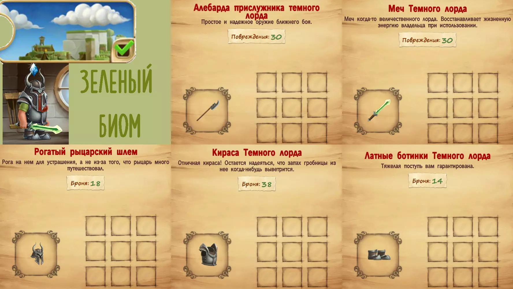 那么我们能从这件事得出什么结论呢——最好首先在图片上标注的那些区域寻找有用的矿石,因为通过魔法传送门帮助矮人来做这件事会简单快捷得多。(关键词——帮助,仅使用传送门无法探索地图,也必须步行前往仓库)如果我们需要的资源不在附近,可以在价格较低的地方放置传送门,然后从那里派侏儒步行前往地图上更远的区域。这也适用于其他法术,但我这里特指传送门,因为它是我认为最有用且最常使用的。另一种在偏远地区获取资源的方式是使用额外的仓库,但建造它们需要花费不少时间。 合作模式。生物群系特点。 在了解了所有生物群系和模式中通用的游戏机制后,我们来详细介绍每个生物群系。 绿色(森林)生物群系。目标是消灭地图中心的 Boss。在 Boss 所在房间内摧毁宝箱后即可判定胜利。