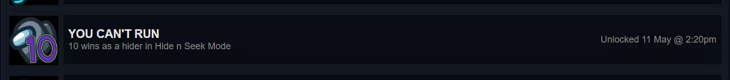 但你可以躲藏 这和“YOU CAN'T RUN”成就完全相同,不过这次你需要在躲猫猫模式中以船员身份获胜50次。