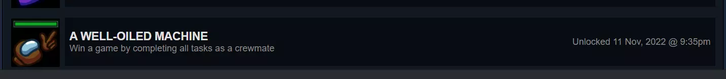 【A WELL-OILED MACHINE】 要达成此成就,所有船员必须完成各自的所有任务,此时屏幕左上角的任务栏会最终显示完成,你将获胜并解锁该成就。与朋友组队刷此成就的玩家能很快完成;但独自游玩的玩家则需要进行多场游戏才有机会达成,因为这需要所有船员的配合。