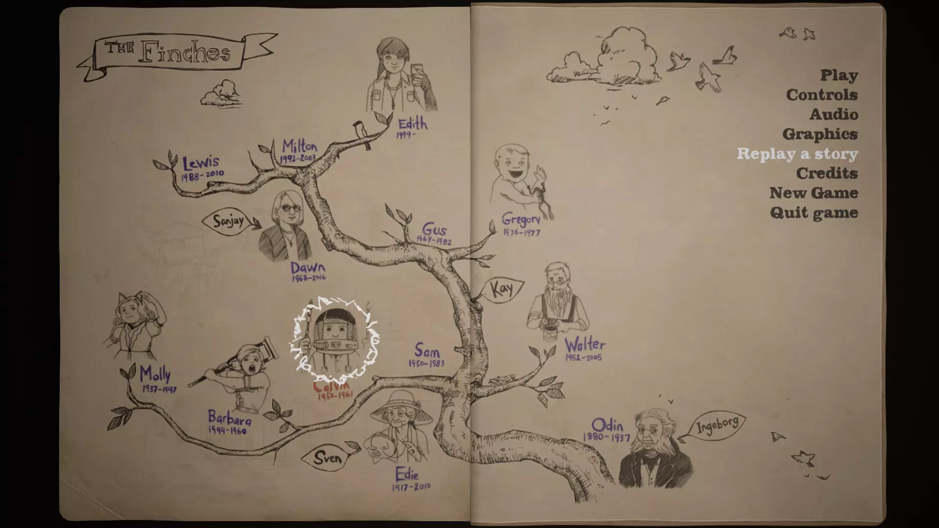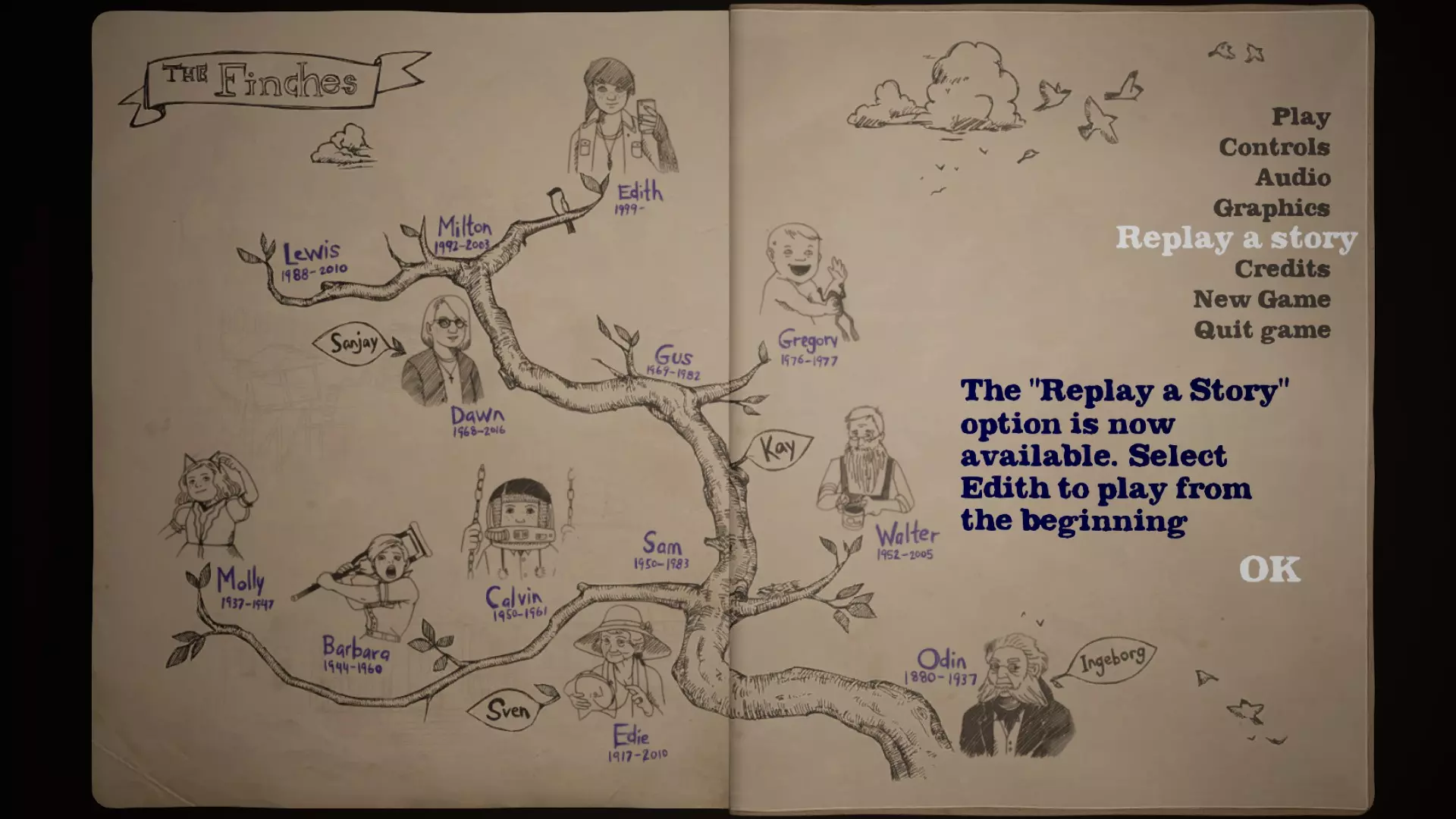 完成所有故事 只需完成芬奇家族的所有故事。根据我的记忆,故事顺序为:莫莉-奥丁-卡尔文-芭芭拉-沃尔特-山姆-格雷戈里-格斯-米尔顿-刘易斯-伊迪-道恩-伊迪丝。 8/9 - "Thanks, Johann!"