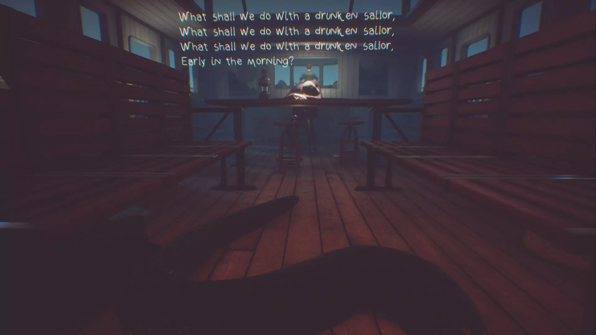 让醉酒水手唱完他的歌 当你扮演饥饿章鱼莫莉/独触手怪物时,潜入船只的中央船舱,等待醉酒水手唱完《醉酒水手》(不得不说这首歌有点长),然后吃掉他。