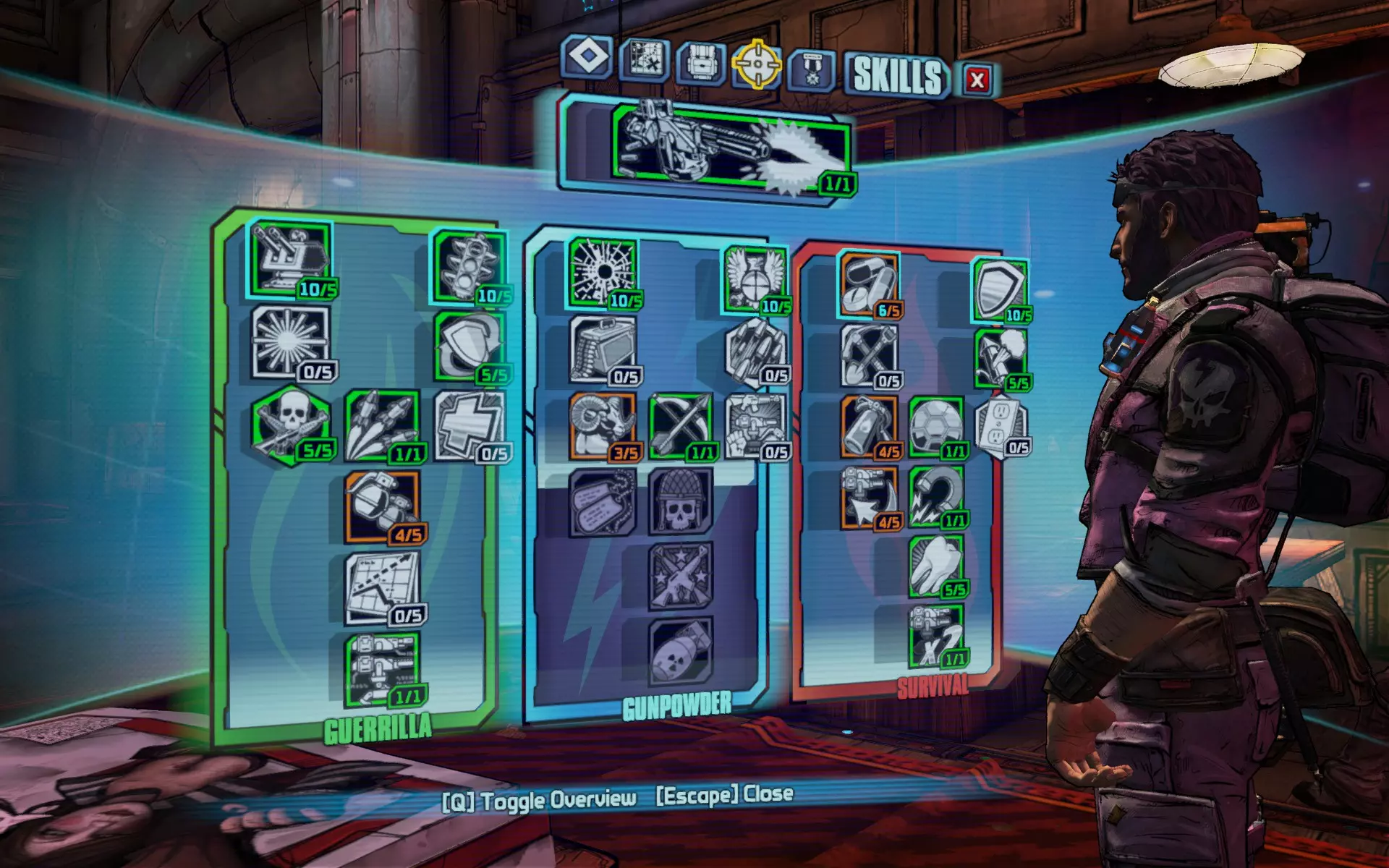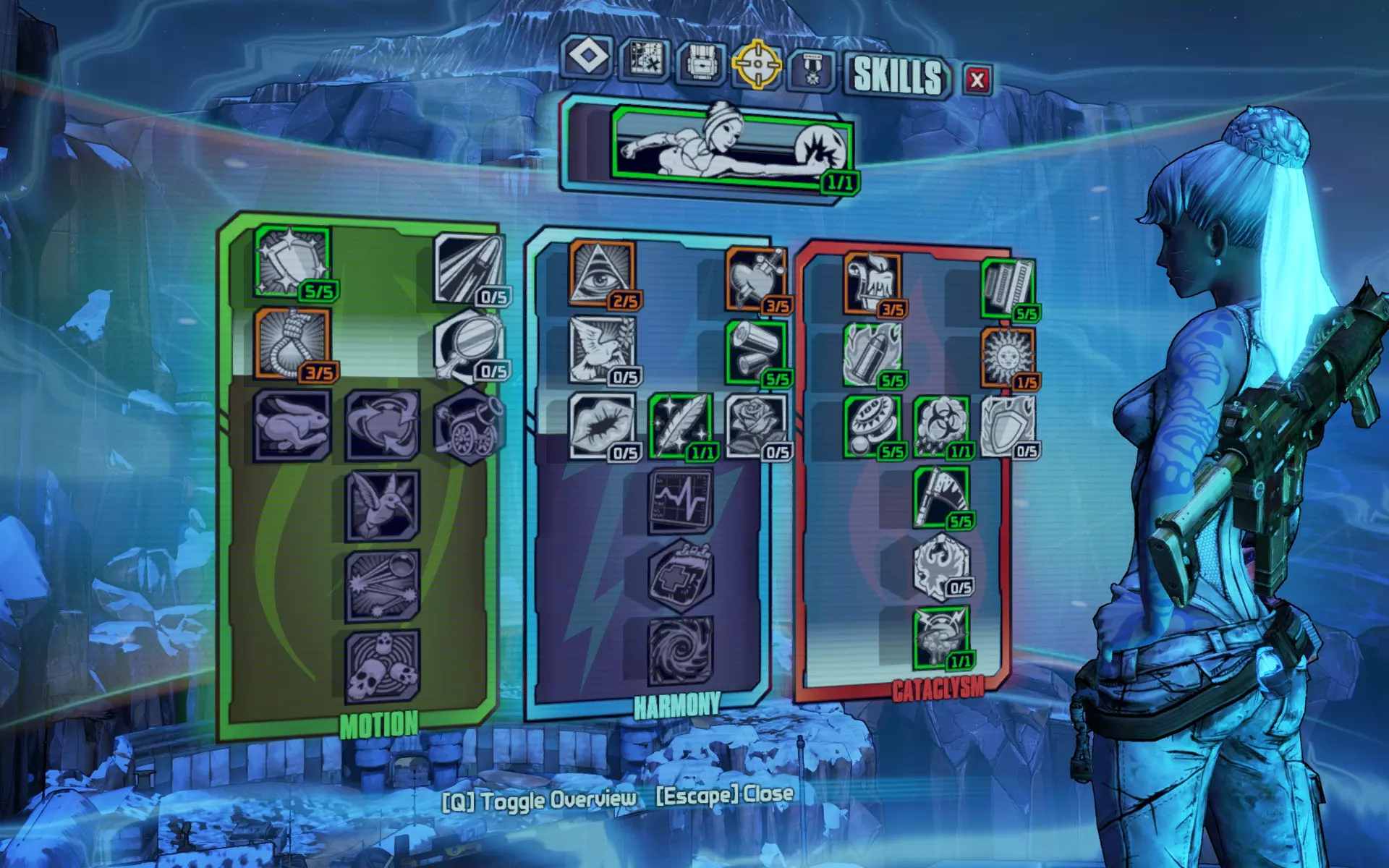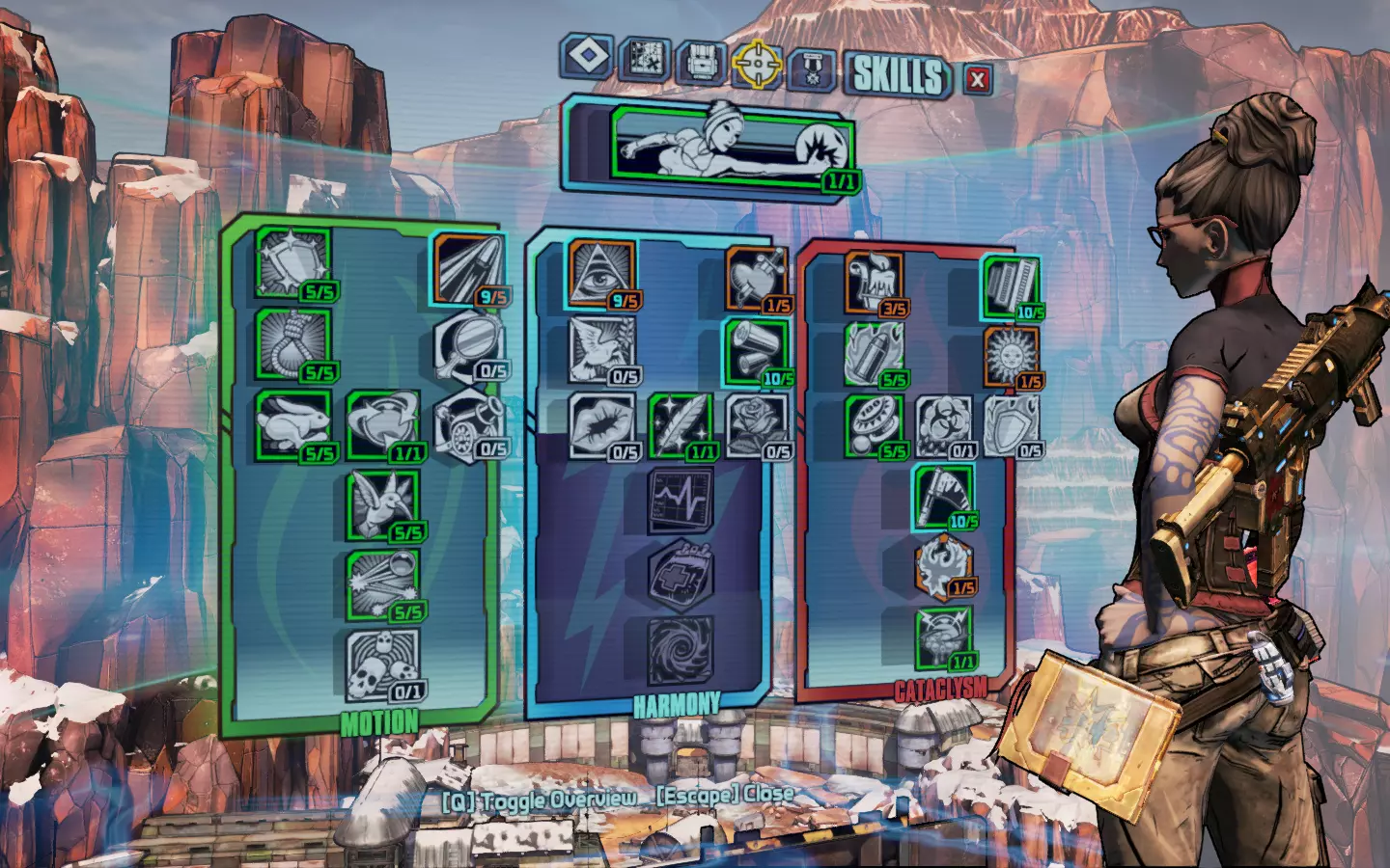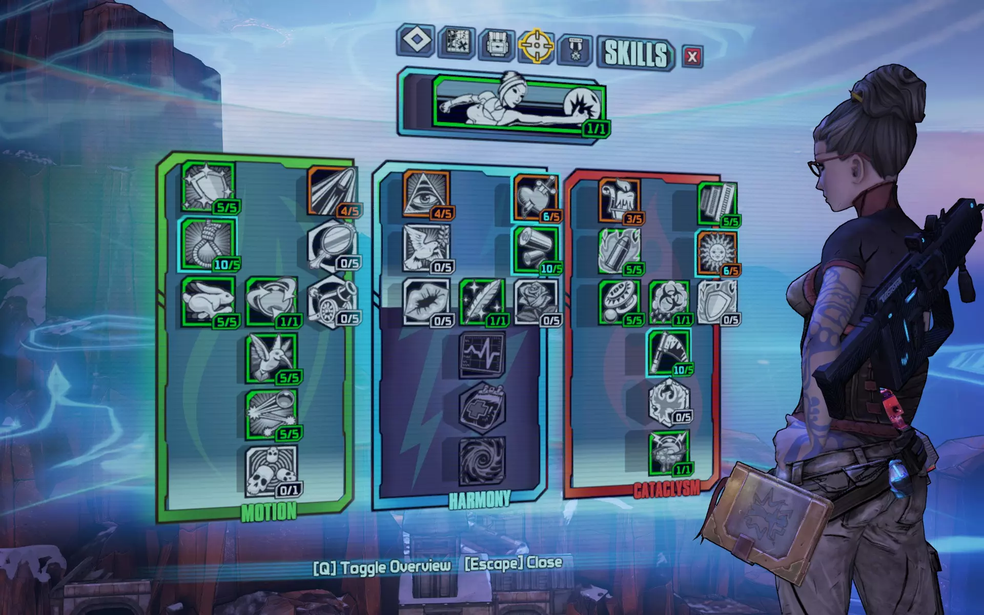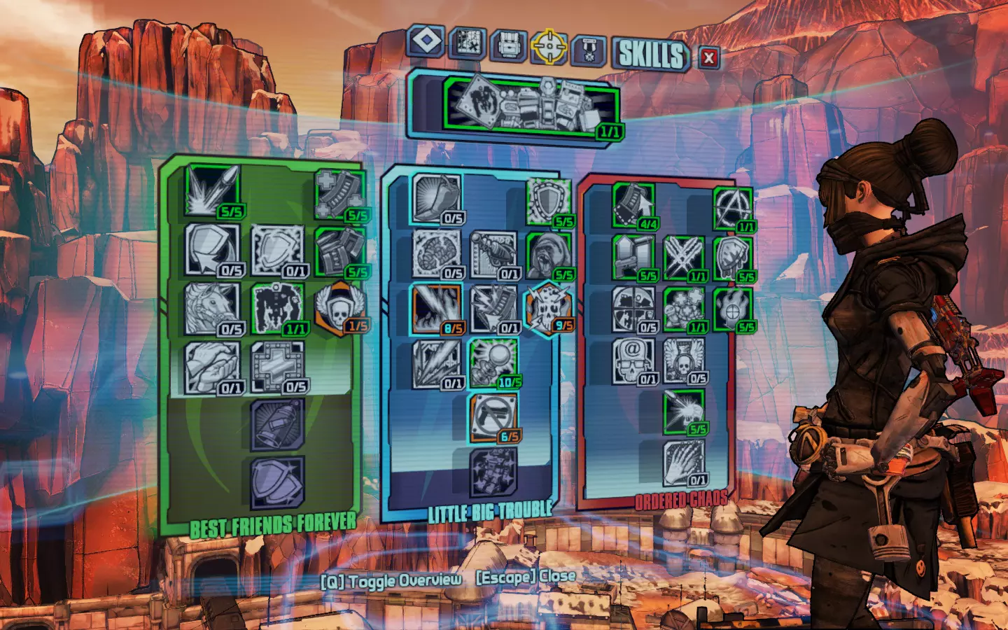 年轻女孩成为了传奇。 装备传奇粘结者的互动加点。 当你填补技能树的最后空白时,你很可能会在65级左右完成终极 Vault 猎人模式的主线剧情和DLC。快速升级的好方法包括:加入合作游戏(虽然已完成的任务不会再提供经验值,但击杀敌人的经验值仍会累积)、刷怪,或者完成可重复的任务(这些任务会提供经验值)。合作游玩是最不单调的方法,但如果你更喜欢 solo,屠杀魔环的硬汉回合、火焰皮特的酒吧混战以及 raid 首领都是获取经验值的好途径。 未被选用的技能及其原因
