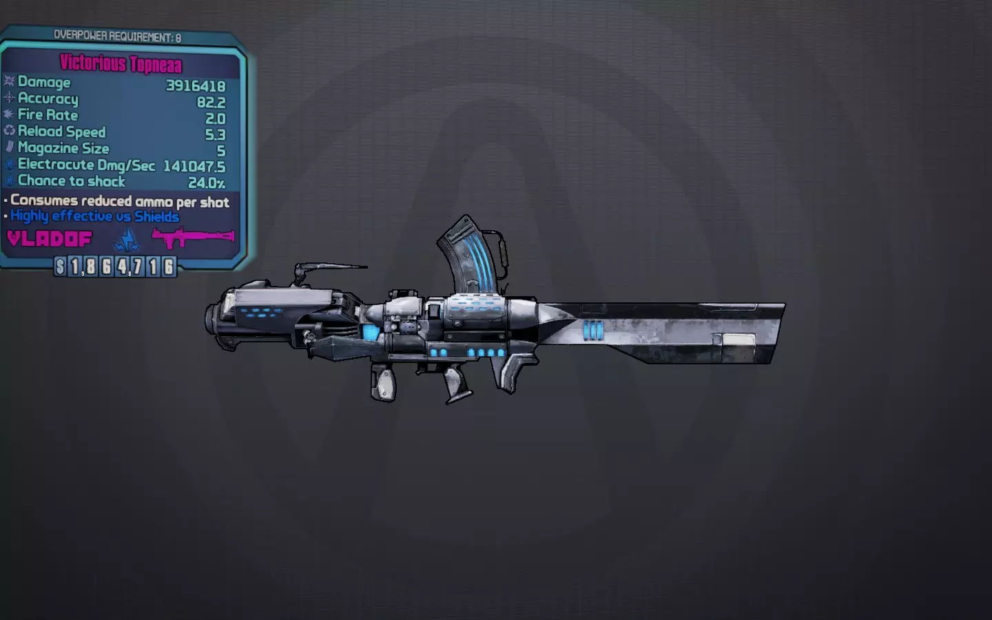 Topneaa是诺法莱特的非唯一替代武器,其射速较快且弹药消耗较低(每第三发子弹免费)。持续射击时,它能倾泻出堪比诺法莱特的火箭弹幕。最佳前缀:动荡、坚固。最佳元素:电击、腐蚀、火焰。最佳配件: Vladof握把、Tediore/Vladof瞄准镜、Vladof/Maliwan排气管。获取途径:可从任何地方掉落;推荐红色宝箱,若想碰运气,也可尝试 Sanctuary 的金色宝箱。