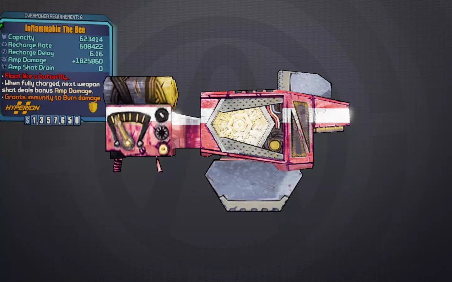 蜜蜂护盾:像蝴蝶一样轻盈…… 一款传奇级亥伯龙增幅护盾,能为你的子弹提供巨额加成,且完全不会损失护盾容量。但有个条件:护盾必须处于满容量状态才能生效,这意味着你必须避免受到任何伤害才能充分利用该护盾。它通常还存在容量极低、充能前等待时间长的问题,但对玛雅来说,凭借她的技能“守护”和强大的群体控制能力,这些都不算什么大问题。装备这个护盾后,你本质上会成为一个玻璃大炮,生存能力有限(如果没有良好的生命值管理方法),而且对该护盾的依赖会限制你在战斗中的选择。不过,如果使用得当,它绝对是玛雅最好的护盾之一。蜜蜂护盾存在一个特殊的利用机制,其增伤效果可以分配到单发射击中的多发子弹上,只要这些额外子弹是【未列出的】。什么算作未列出呢?如果你查看每件武器的属性卡片,伤害部分有时会显示(基础伤害)x(每发子弹数量),例如霰弹枪。有时,一把枪可以发射多发子弹,但这些子弹不会在卡片上显示(额外子弹数量未列出或显示为虚假数值)。这些额外的隐藏子弹中的任何一发都将携带蜜蜂护盾的全部原始增伤。例如,一把列出7发弹丸的霰弹枪会将原始增伤效果平均分配到7发弹丸上。另一方面,沙鹰实际上有8发子弹,但在卡片上只显示为1发。这8种武器均拥有全额的放大器伤害,无需任何分摊,造成的伤害足以真正破坏游戏平衡。以上面的蜜蜂护盾为例,霰弹枪的伤害会分摊为每发子弹约89,059点伤害,如果每发子弹都命中,最大伤害可达623,414点;而沙鹰则是每发子弹623,414点伤害,总伤害更是高达4,987,312点。由于这对枪械既有正面影响也有负面影响,所以使用蜜蜂护盾的玛雅玩家在选择枪械时必须牢记这一点。 最佳前缀:易燃、碱性 最佳部件:全马里旺。充能延迟越短越好! 获取途径:在任务【最新消息】中由猎人赫尔奎斯特掉落,也会从《无主之地2》小缇娜DLC中的树精身上频繁掉落(推荐在森林区域尝试) 其他值得一提的装备: