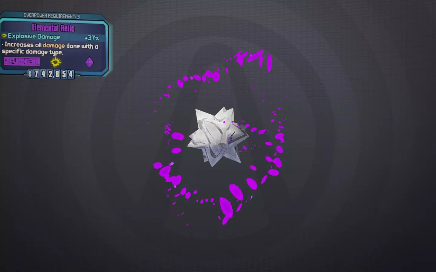 元素圣物(爆炸) 此处列出是因为骨片圣物没有爆炸属性;但它对玛雅来说不是特别有用,因为玛雅的优势在于元素伤害(爆炸不算元素伤害)。最适合搭配哈洛德或剑爆等武器使用。