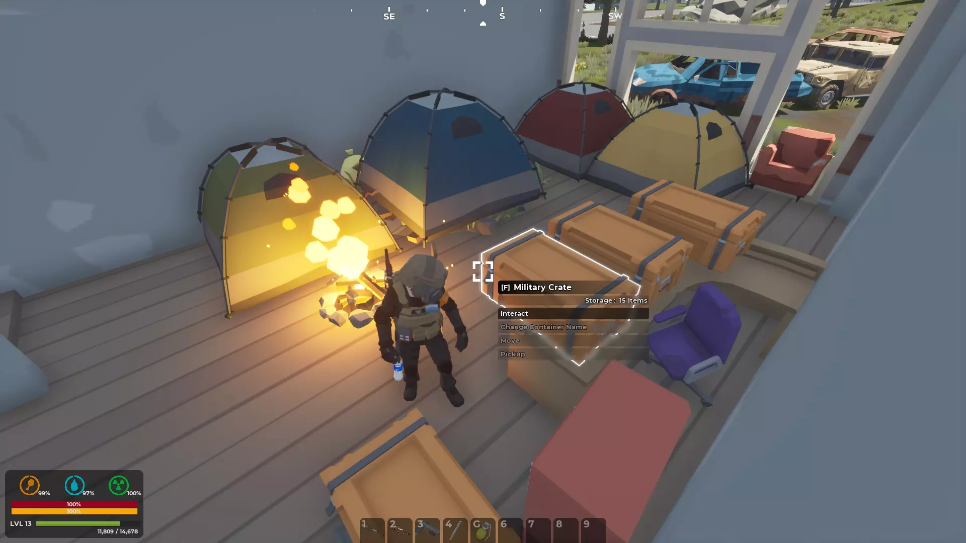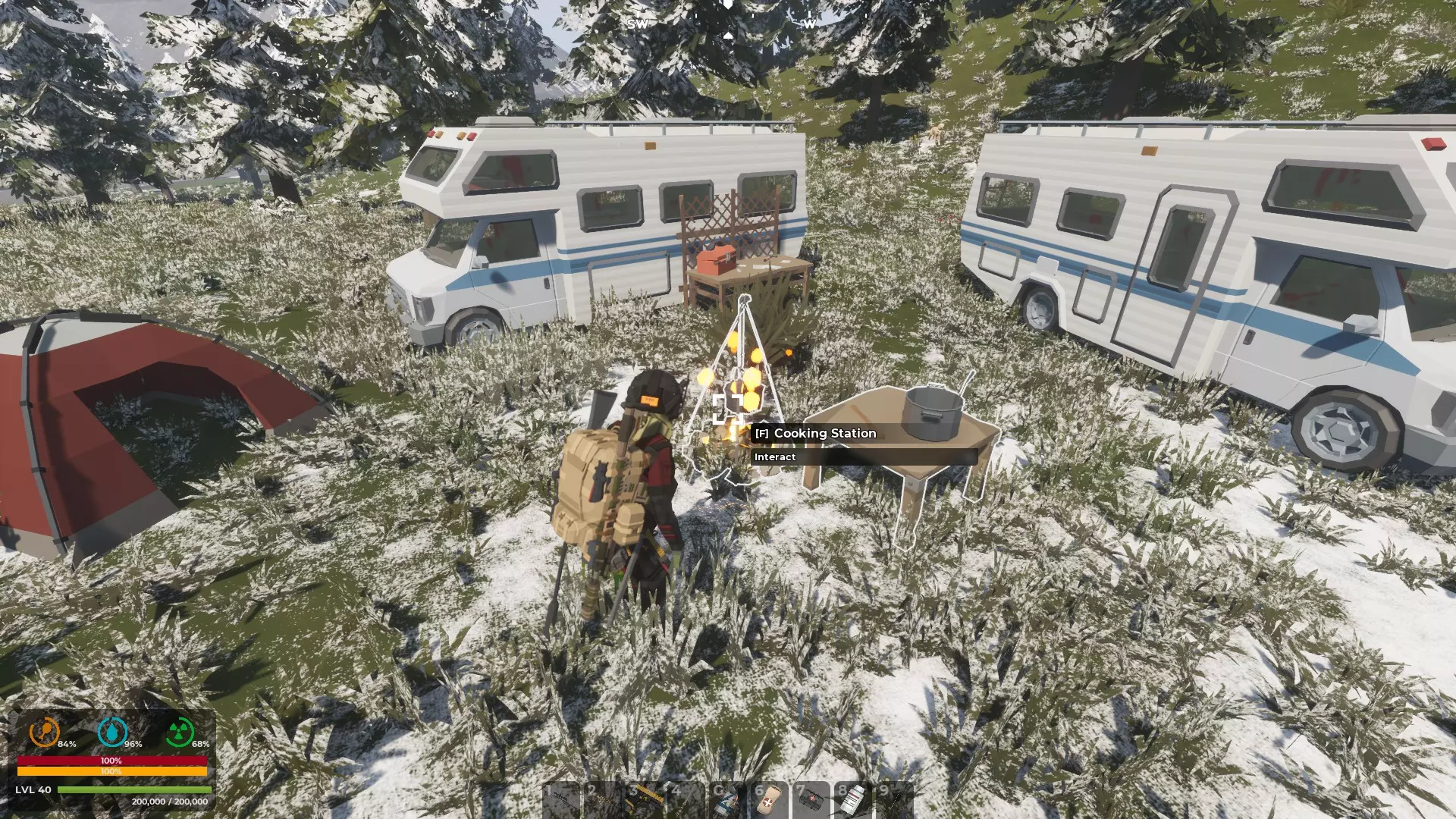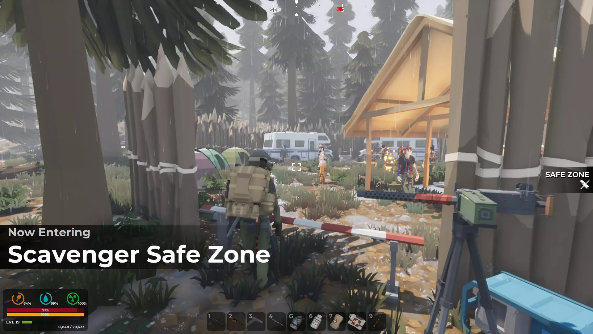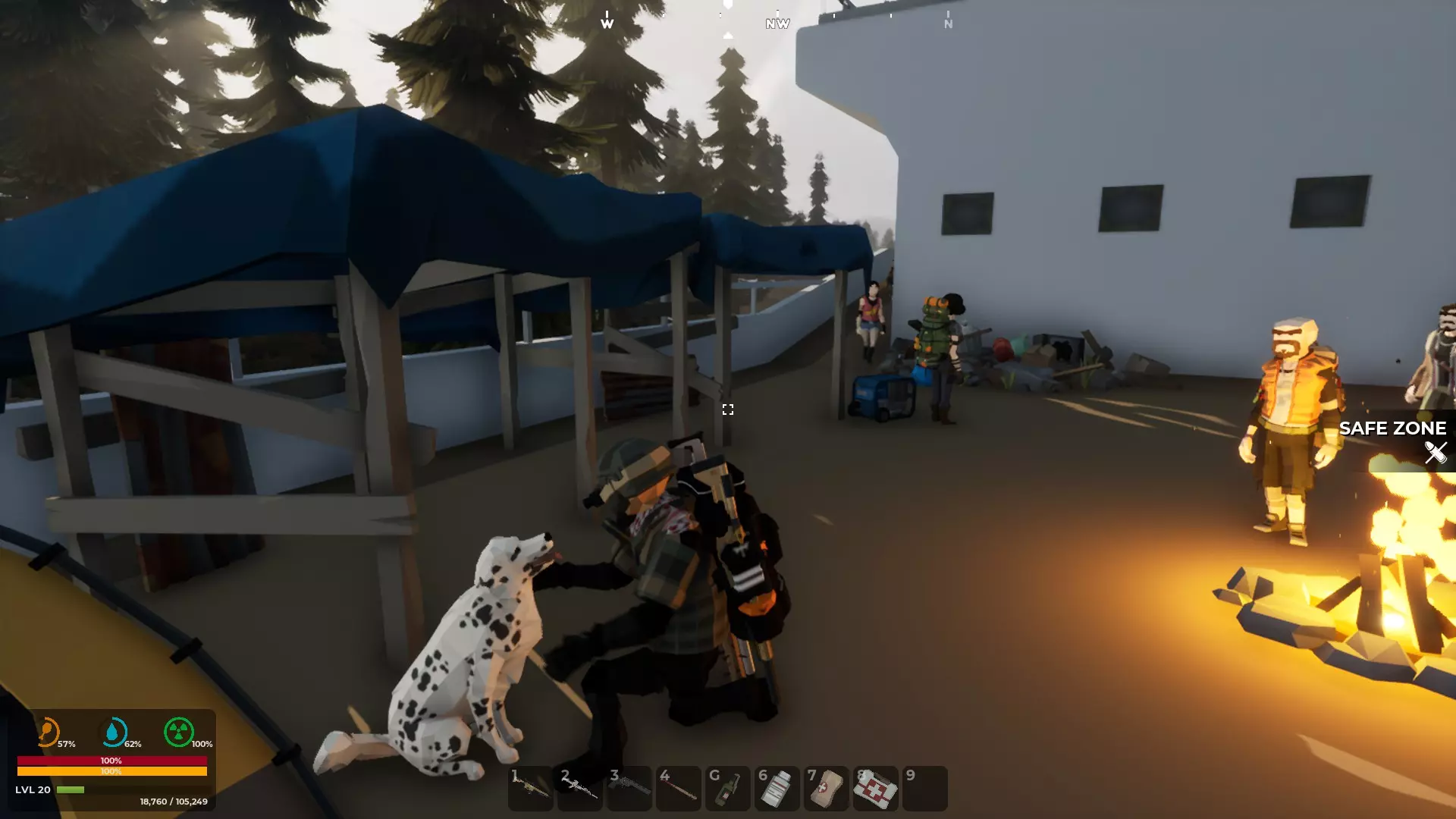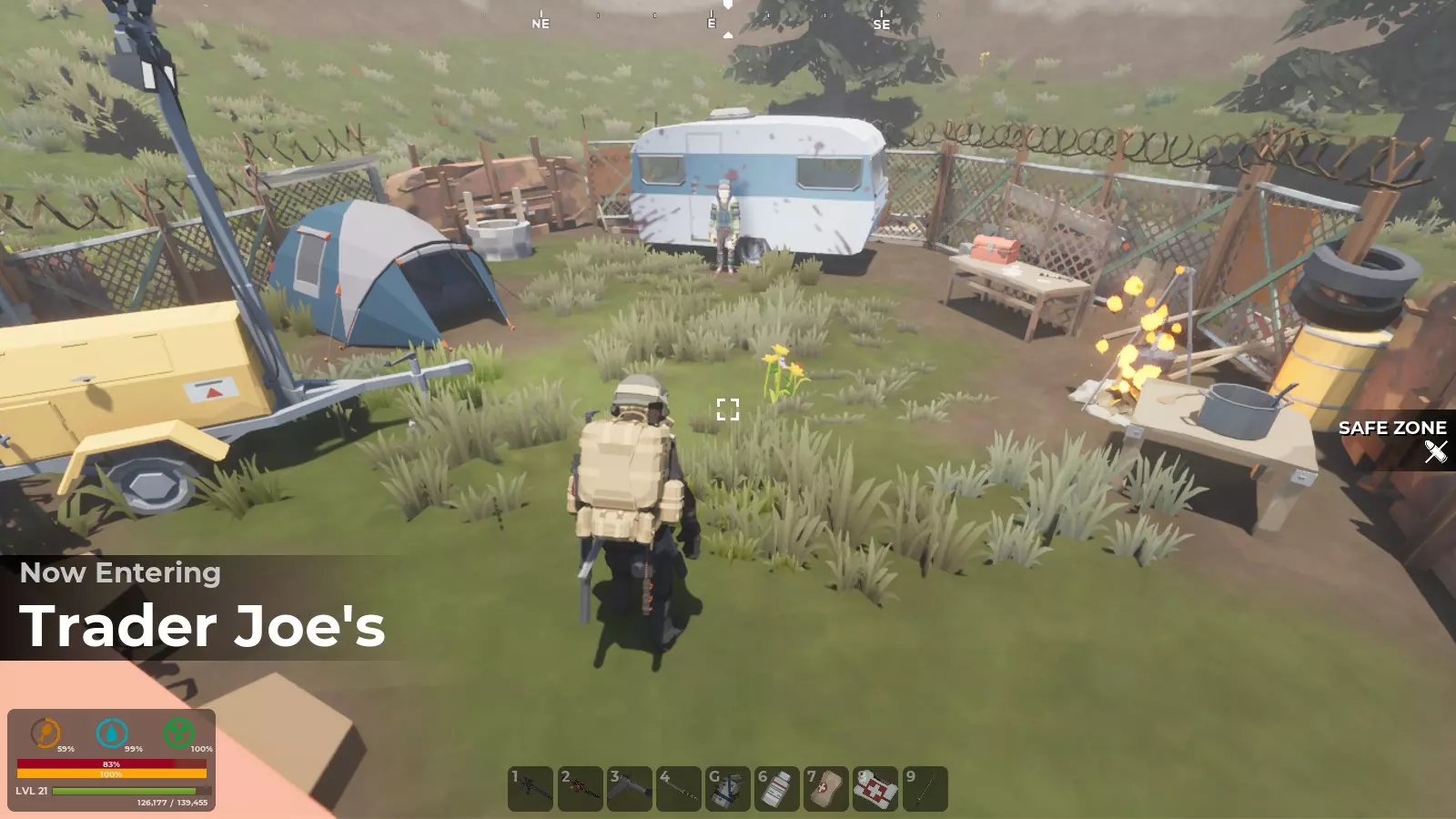 建造你的家庭基地营地 无论你占据现有的房屋、仓库、消防站、火警瞭望塔还是地下掩体,你的基地营地都是你存放物品的地方。 选择中心位置非常合理。靠近安全区的地方可以让你轻松接触到那里的商人。