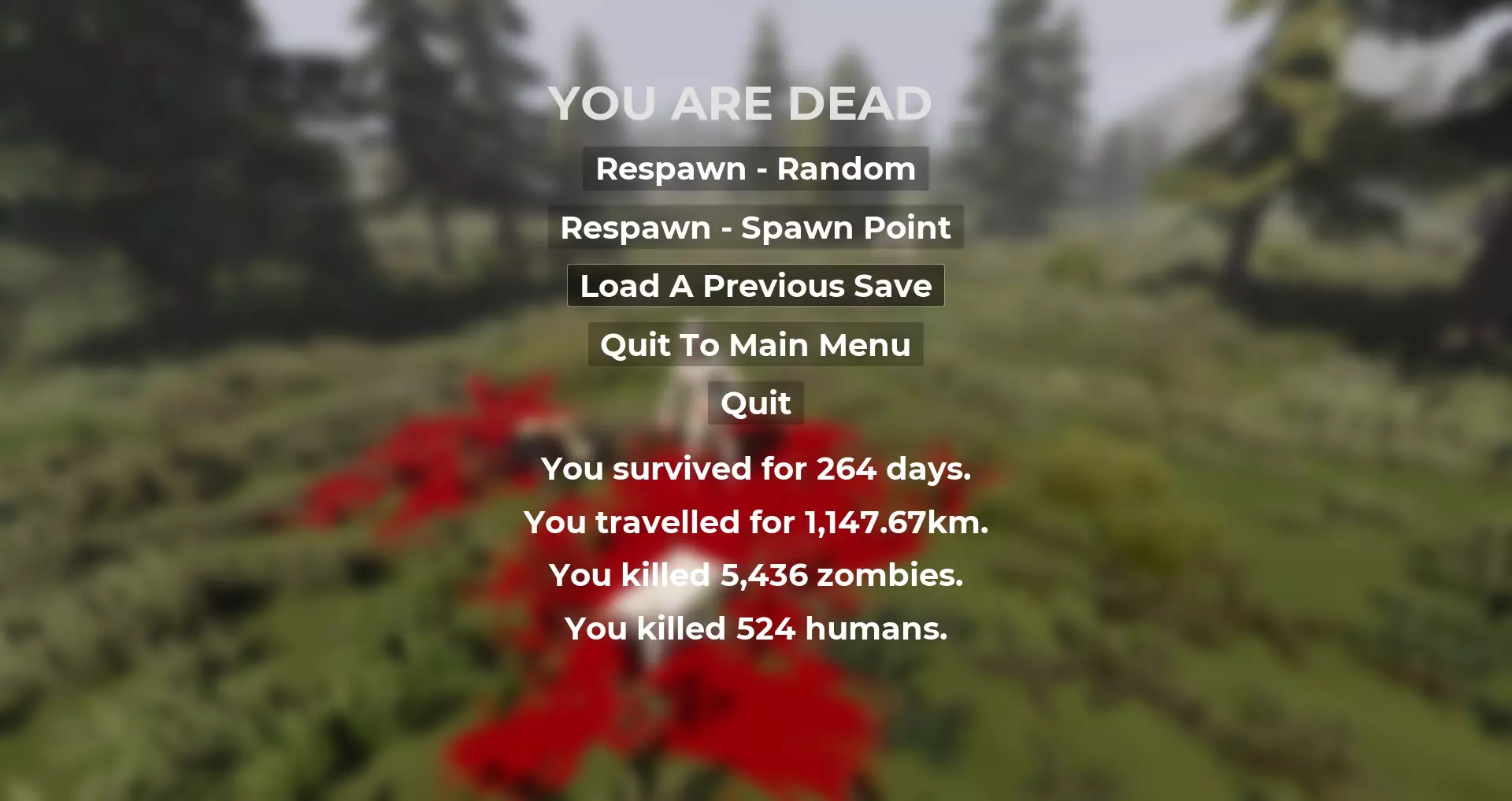 你的出生地点也是随机的。在0.7e版本更新后,出生点分布在地图各处的道路沿线。不过游戏中有多种出生可能性,因此我们只能提供一些基本原理和建议,但每一局游戏的体验都是独特的。由于这是一个开放世界,你可以前往任何地方,所以存在很多随机性。 如果你发现自己被大量感染者包围,可以跳上或爬上汽车或货车的车顶。你可以在车顶上用刀刺向他们的头部。 如果你遭到土匪袭击,朝着一群感染者跑去可以让你有机会摆脱追赶你的土匪,因为感染者会分散他们的注意力,并且会干扰试图从背后向你射击的土匪狙击手的瞄准。树木也能起到类似的作用。但不要停下躲藏,他们的追踪不只是依靠视线,而是要蛇形跑动,而且由于你没有装备,你的移动速度比土匪奔跑者稍快。