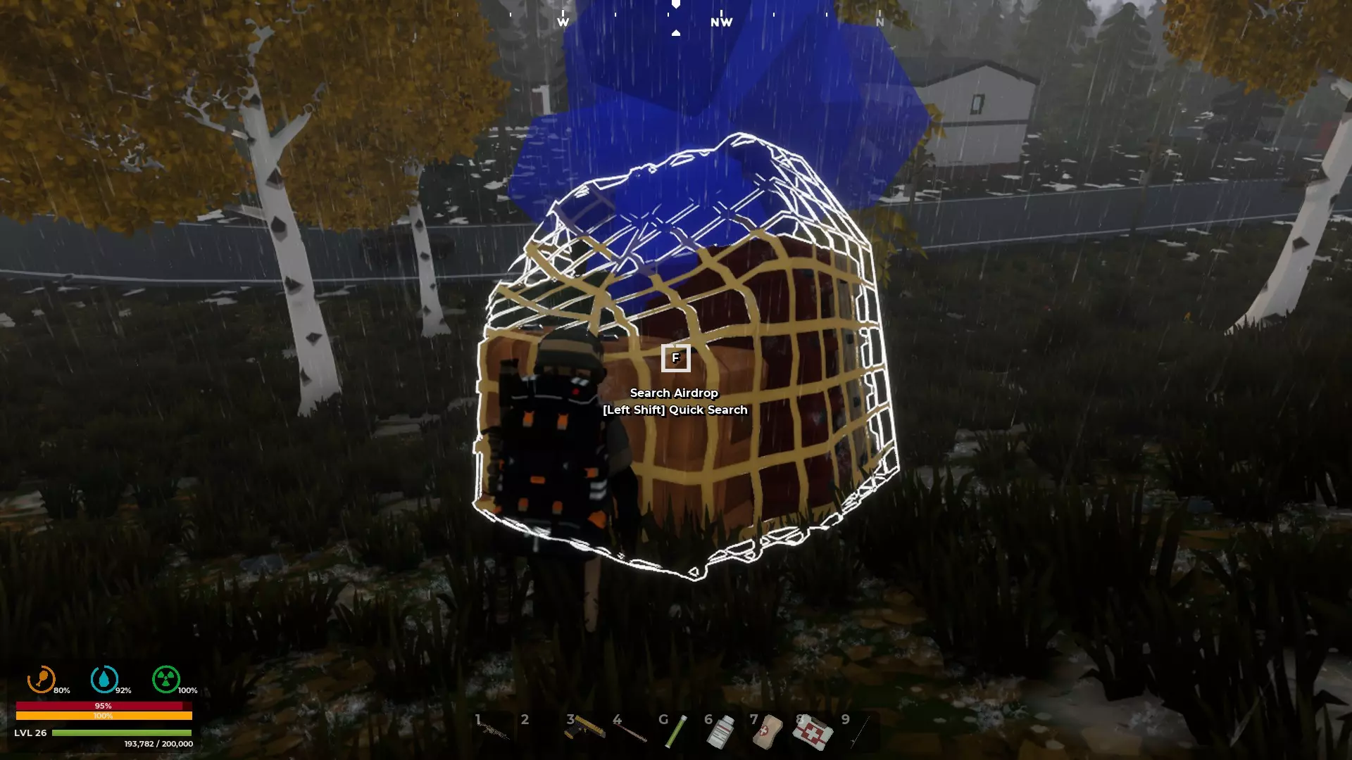 饥饿与口渴——时刻需要关注的游戏机制。 饥饿和口渴是本游戏的重要组成部分。你需要定期进食和饮水。 问题在于,寻找食物可能很困难。即便找到了食物,比如一罐豆子,没有开罐器也无法打开食用。 要时刻留意开罐器。 蓝色空投会提供大量即食口粮和水壶,还有汽油桶和威士忌瓶,可用于制作燃烧瓶。