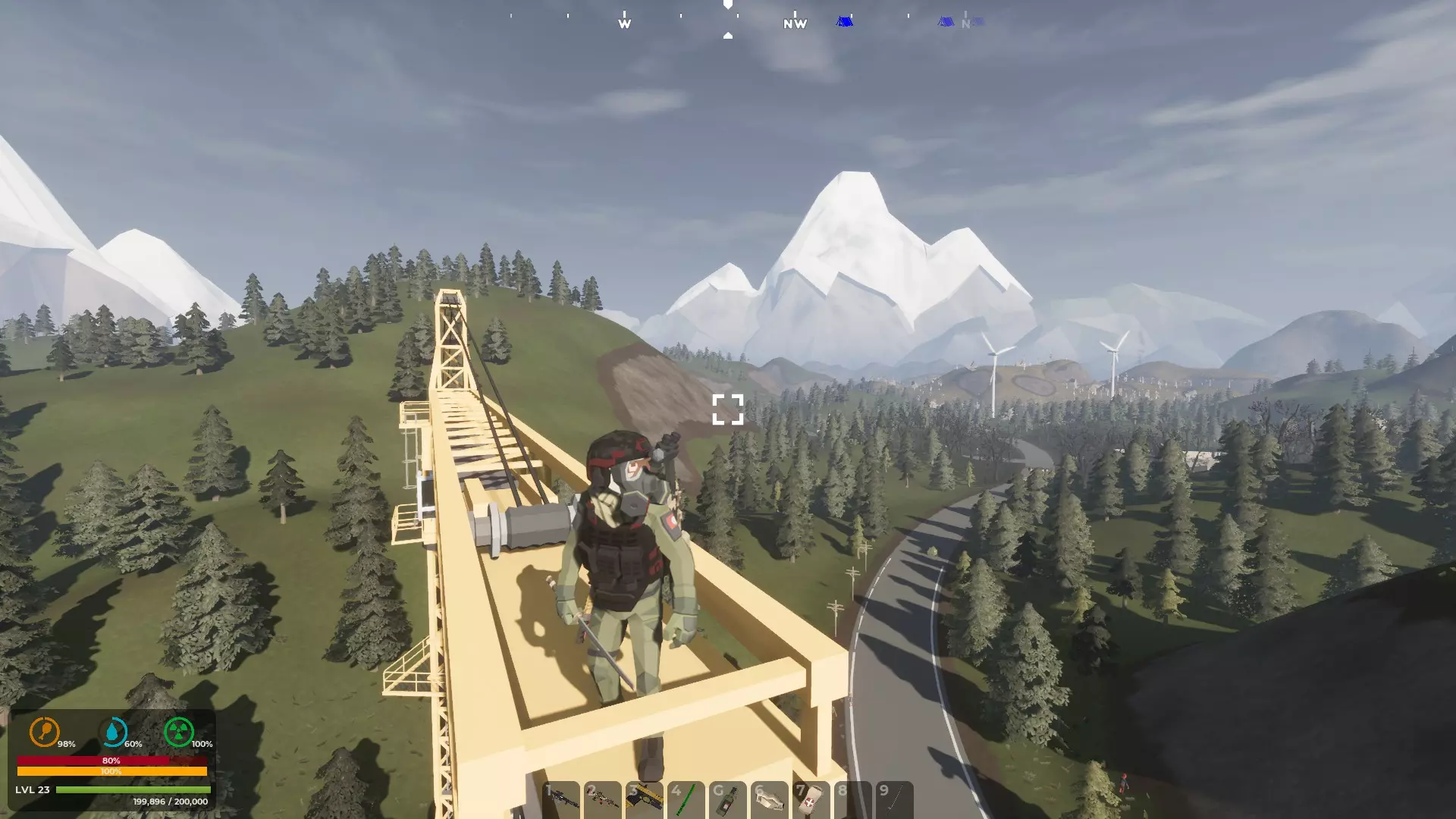 埃尔伍德镇的高楼大厦在树林间若隐若现。关于城镇,有一点需要记住:人口密集区域的感染者数量会更多。 从主柏油马路延伸出去的土路,几乎总能通向值得探索的地方。 风车和水塔通常与农场相连。遗憾的是,目前大型风力发电机只是随风转动。这种情况未来可能会改变。不过,从出生点朝着发电机的方向前进,你肯定能找到一些感兴趣的物品。但一定要小心行事。