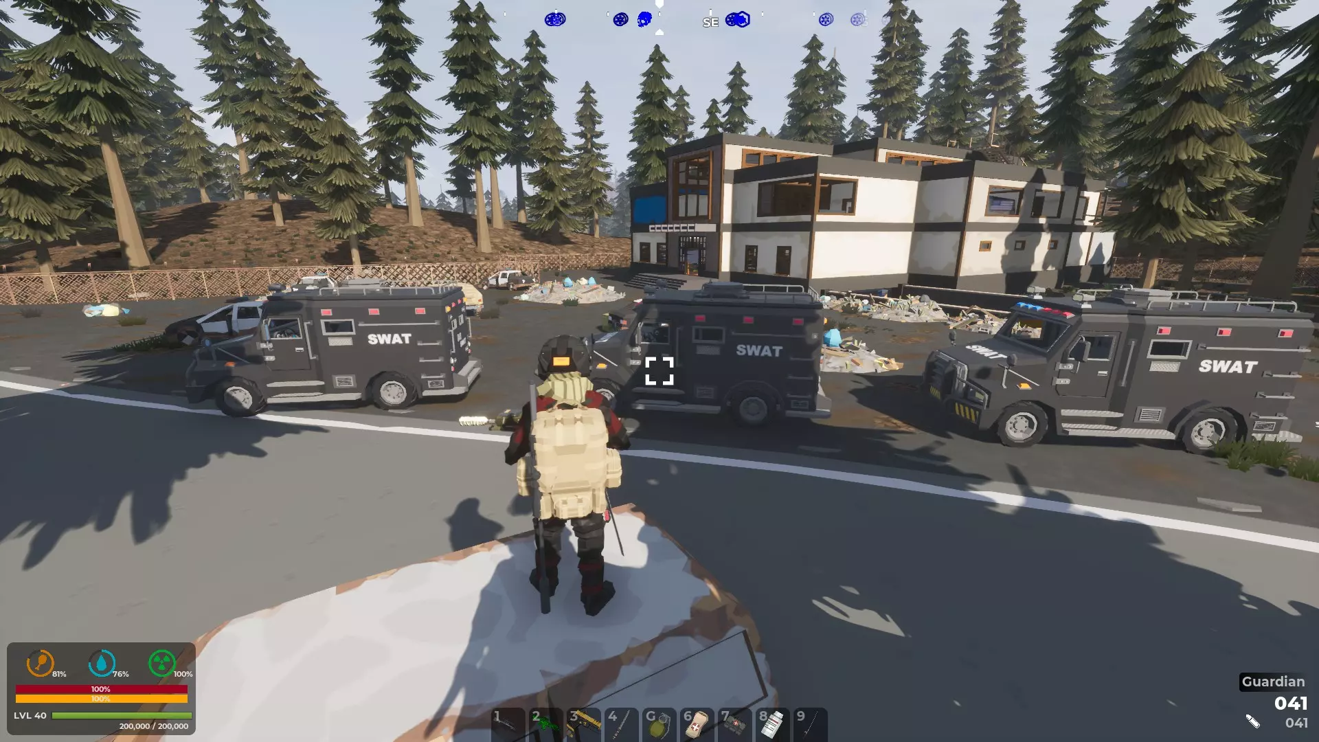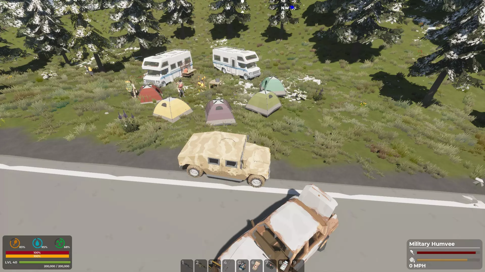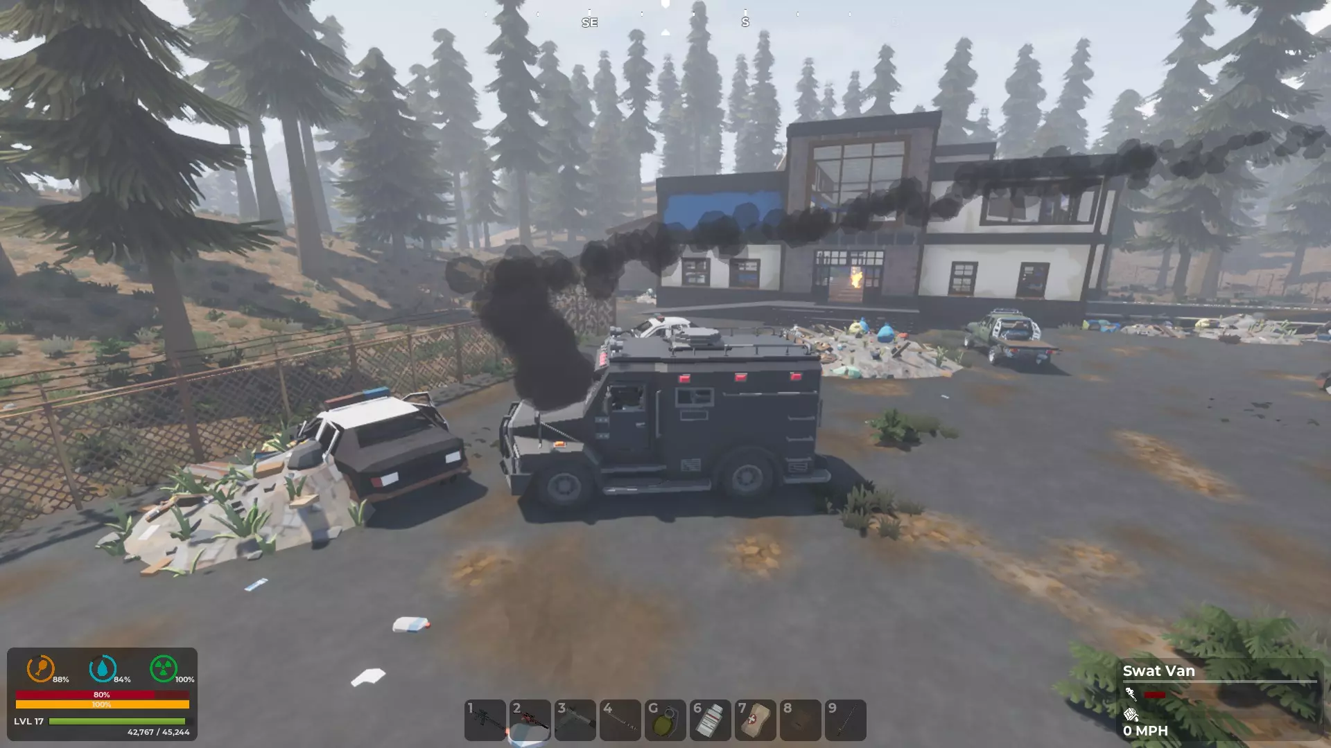 另一个选择是医疗补给空投,它们确实存在,值得花时间去搜寻。 0.8版本还对大量物品的常规掉落进行了重新平衡。现在弹药更难找到了。由于玩家们抱怨游戏太简单,所以我们将整体难度略微提高了一些。 去看看FOB布拉沃的更新吧,看起来很酷。 新增了一种载具,是警车,不过它目前是基于旧款越野车打造的,可能还需要一些调整。它开起来相当快。 新增了一个荒野小屋地点,俯瞰着东河。 尚未找到死亡区域和受辐射的核反应堆,它们可能仍处于某种建设阶段。 此外,还加入了几种新的独特僵尸。掷弹兵看起来像戴着头盔的士兵,行为模式类似《我的世界》里的爬行者。当玩家进入其激活范围时,它会开始发出哔哔声,然后爆炸。好处是,这通常能消灭附近的一些其他僵尸;坏处是,如果你处于爆炸范围内也会死亡。 另一种是尖叫者,本质上是个警报器,会把其他僵尸吸引到你的位置。你已经被警告过了。
