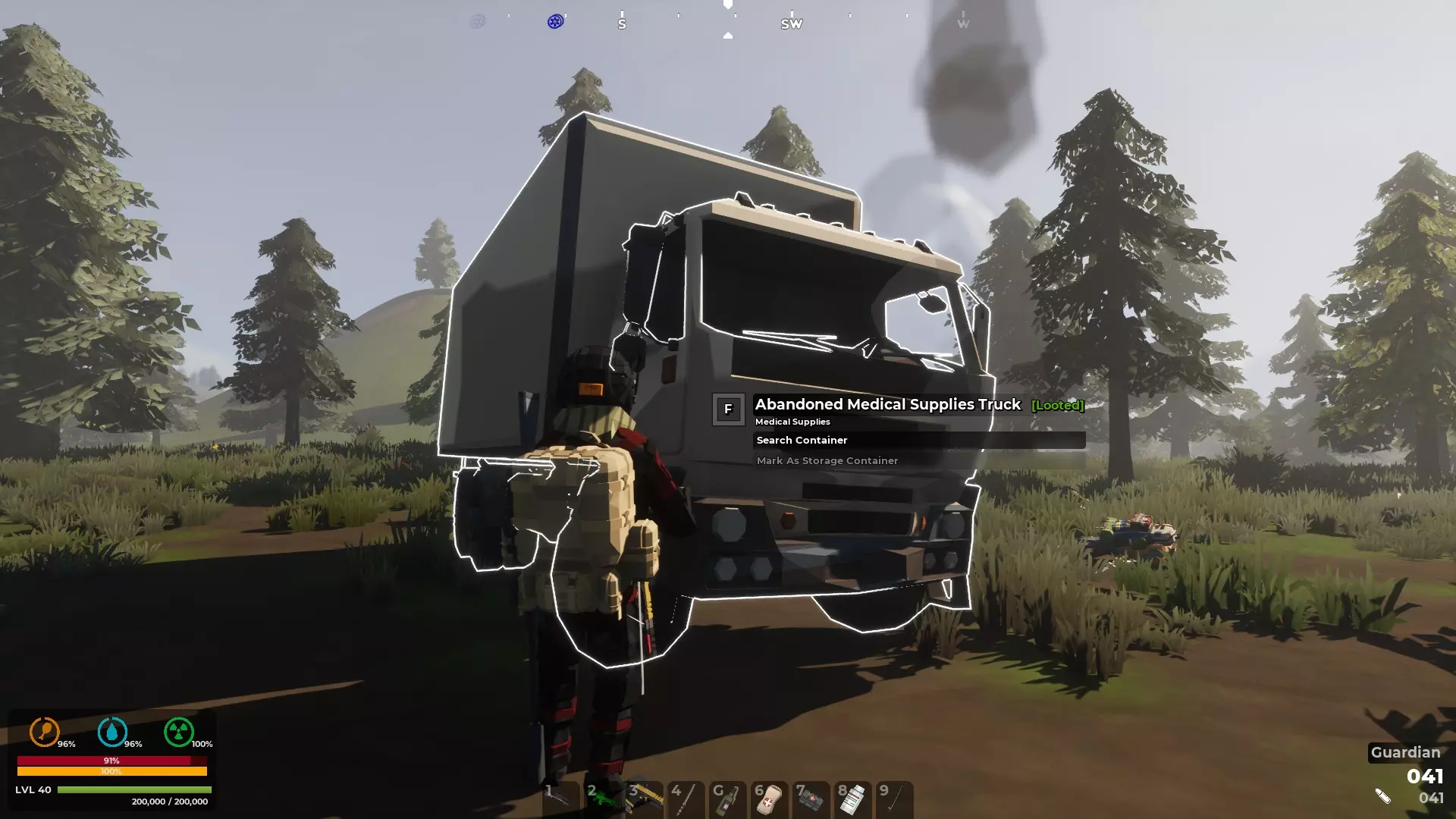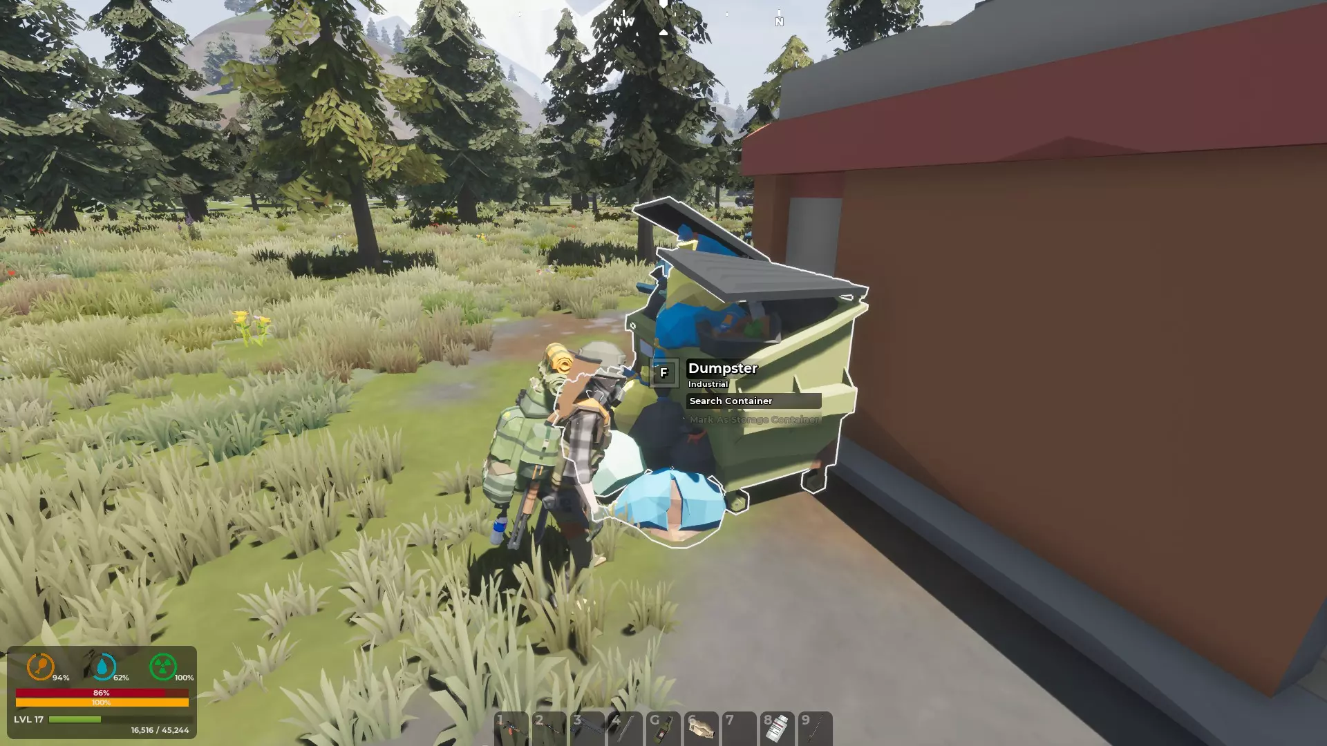 游戏开始时,你需要更好的武器、带储物格的衣物以及有容量的背包。这些物品可以在建筑、房屋、谷仓、汽车旅馆和露营地中找到,具体能找到什么是随机的。你初始只有8个物品栏位,这显然不够用。选择带走什么、留下什么是个难题,但你必须找到背包,而且越大越好。 如果没有枪,子弹就毫无用处。幸运的是,找到枪后,它会在工具栏中占据专门的位置,不会占用你的物品栏空间。初期,食物、水和医疗用品是优先考虑的,开锁器也很有用。不过,找到一把像样的近战武器也能帮助你度过最初的几天。如果能一物多用就更好了。例如消防斧;既能消灭感染者,也能砍木头。 主要问题在于,物资更好的地方通常也有感染者在游荡。这是一个典型的两难困境:你需要更好的装备来消灭僵尸,但为了获取装备,你又不得不穿过感染者聚集的区域。