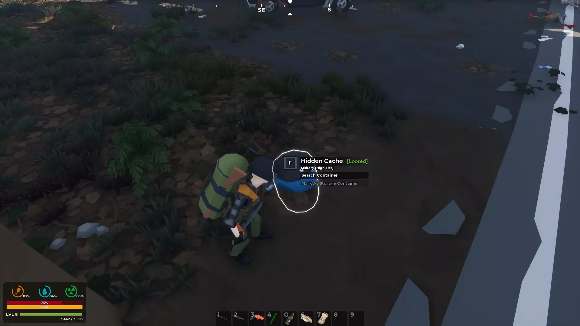 隐藏储藏桶,蓝色,部分埋在地下。这些桶分布在地图各处,不易找到,但在不同的游戏进程中会重新出现。它们的位置是随机的,因此可能在一局游戏中存在,而在下一局中消失。桶内通常装有各种装备、武器、即食口粮和药品。