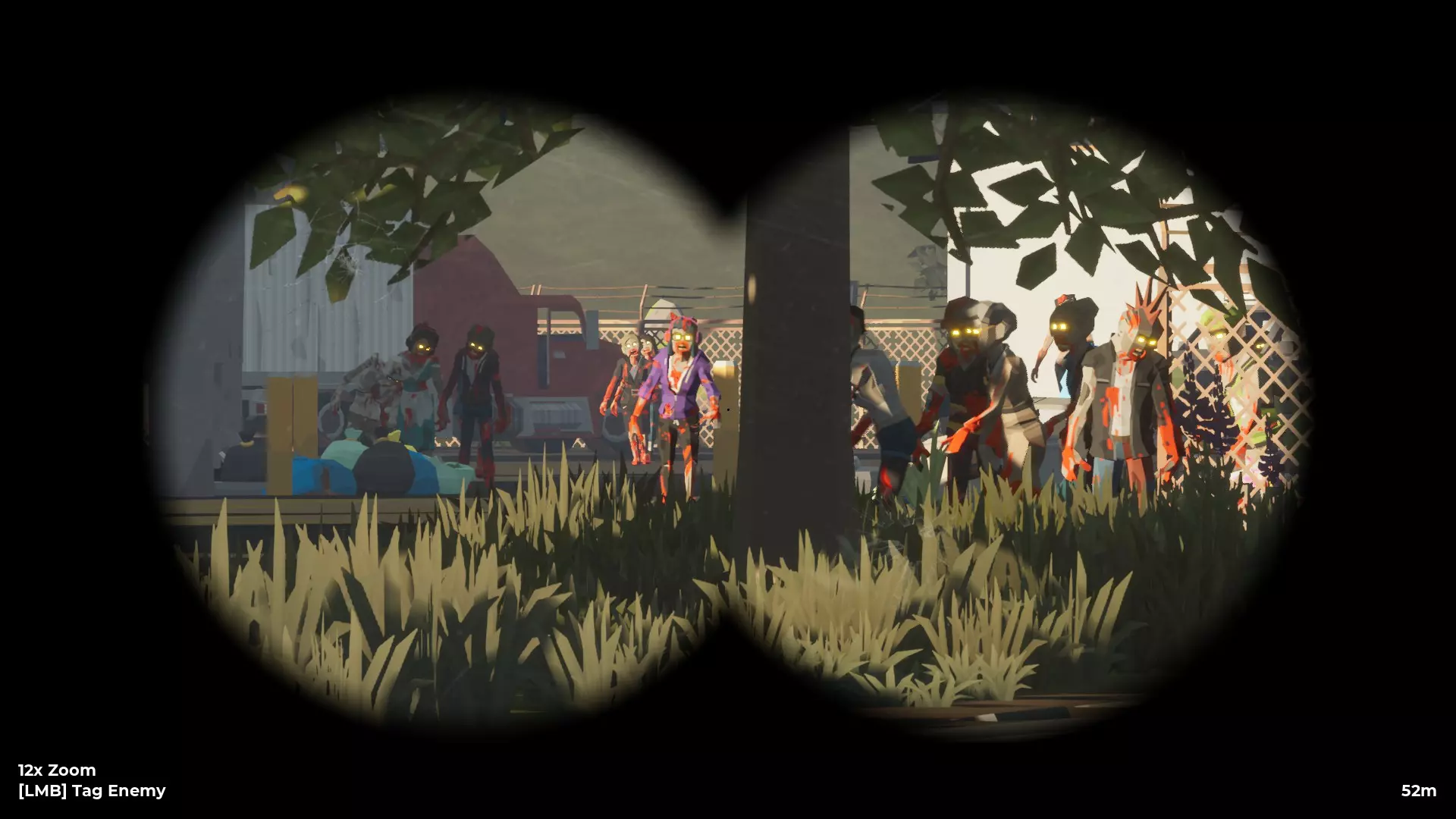 即便是小型建筑的屋顶也能帮助你改善视野。例如,这里就有两个匪营的明显迹象。如果你朝着那个方向前进,就会遭遇匪徒。而且,匪徒有时会在某个区域巡逻,并四处移动以寻找威胁。