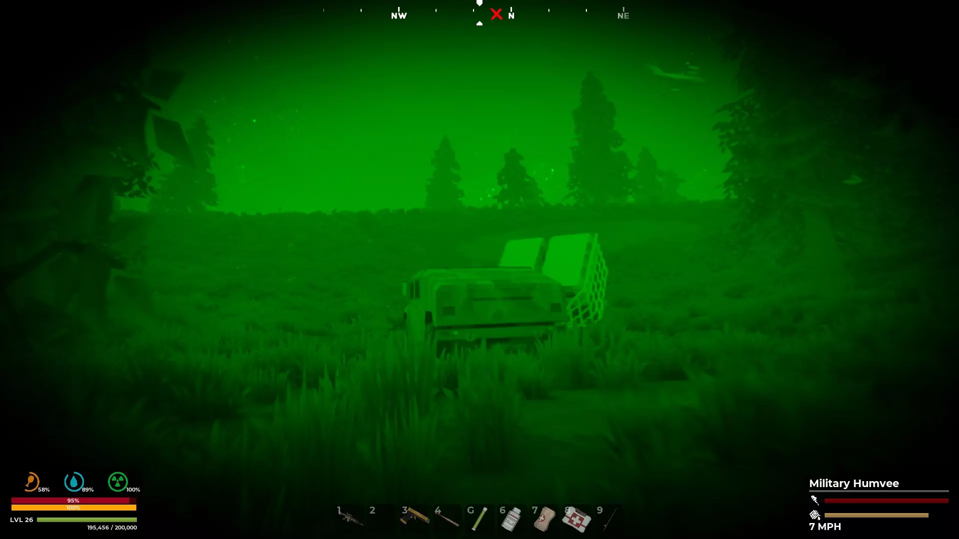 第四个近战武器槽位可能需要经常更换,具体取决于你是要自卫还是寻找木材和石头等资源。要始终随身携带斧头和镐子,以收集足够的石头和木柴来制作营火。 夜视镜和防毒面具都有不同的等级品质。夜视镜的顶级品质是绿色色调和大视野范围。