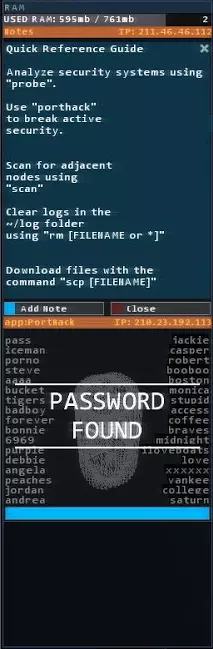 当你无法使用终端(无论出于何种原因)时,你可以使用菜单。菜单拥有非常友好的图形用户界面(GUI),能让游戏/黑客操作更简单,但真实感会降低。你可以使用探测/nmap扫描端口、扫描计算机与其他计算机的出站连接、登录计算机、断开连接、查看文件系统等。尽管菜单使用起来可能更简单,但并非所有操作都能通过菜单完成。在《黑客网络》中入侵计算机时,你可能需要同时使用菜单和终端,或者只使用终端。有些操作需要在入侵系统时使用终端或菜单,例如需要用shell过载代理。 “你说什么,我不能只使用菜单?”在整个游戏过程中,你很可能会同时使用菜单和终端。在某些任务中,对其中一个的使用会多于另一个。让我为你详细说明一下。菜单基本上是一个显示界面。 使用菜单,你可以: - 探测 - 登录 - 查看文件系统 - 查看日志 - 扫描网络 - 断开与计算机的连接 使用菜单无法做到的事情: - 实际入侵系统 - 在端口号上使用或运行.exe文件或黑客程序 - 编辑或创建文件 - 移动文件或文件夹 因此,所有在菜单中能做和不能做的事情,你都可以在终端中完成。 -------------------------------------------------------------------------------------------------------------------------- 内存/任务栏
