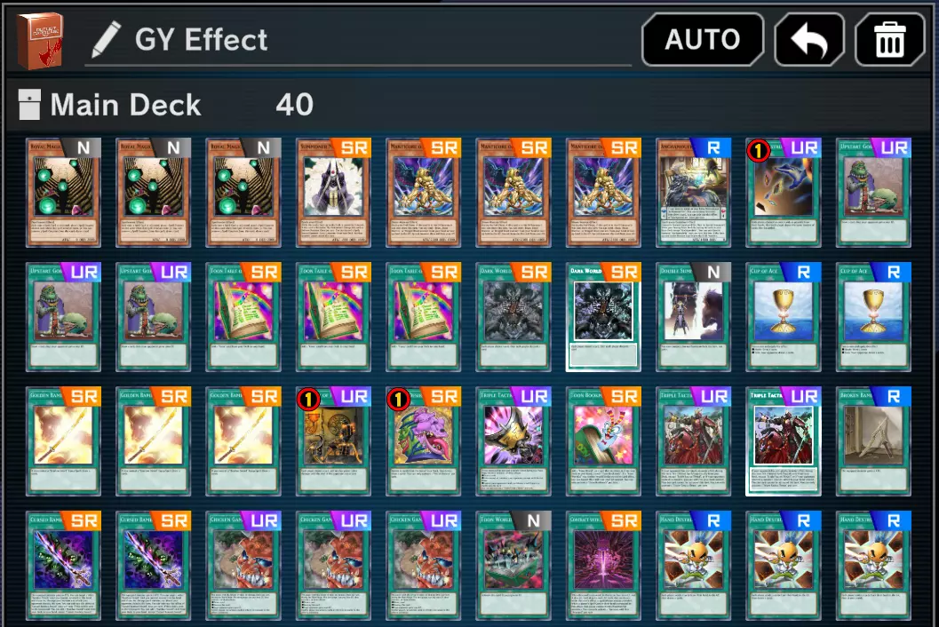 然后通常召唤一只怪兽,并装备你拥有的所有魔法卡。 Strong Arm - Deal Over 8,000 Damage in a Single Attack (20) Strong Arm -> Deal Over 8,000 Damage in a Single Attack - 20 我们可以使用几种策略,但如果你预算有限,试试组一套【 Crusadia 】卡组。整套卡组实际上只需要两张 SR 卡,而且没有 UR 卡。你总是想后手,因为这是一个 OTK 策略。 【 Crusadia Spatha 】不会用于任何地方。你也不需要两张【 Crusadia Equimax 】,我只是刚好有而已。以下是卡组列表: 主卡组(40张) 3x 幻变骚灵·查询昆提兰那克 3x 幻变骚灵·泛在羽衣精 3x 幻变骚灵·十六巫赫卡忒拉 3x 幻变骚灵·文蒂 3x 幻变骚灵·延迟菲芬尼拉 3x 星遗物-「星冠」 2x 并行超越者 3x 雷霆帝王 雷击 kaiju 3x 歼星舰 恒星 kaiju 1x 强欲而贪欲之壶 2x 闪电风暴 3x 幻变骚灵的复活 3x 旋风 3x 禁忌的圣杯 2x 幻变骚灵的力量 额外卡组(4张) 1x 幻变骚灵·大星义女巫 1x 幻变骚灵·多功能诈骗者 1x 幻变骚灵·网络傀儡师 1x 幻变骚灵·隐私王班西 幻变骚灵怪兽可以在有连接怪兽存在时特殊召唤到场上。你可以将其特殊召唤到被该连接怪兽所指向的区域。此为每回合一次的效果。游戏目标是通常召唤一只怪兽并逐步连接召唤,直至召唤出连接3怪兽【星杯神子 夏娃】。连接怪兽的攻击力会根据其连接指向的卡片数量提升,因此我们的连接3怪兽可以获得自身攻击力加上另外3只怪兽攻击力的总和。这也是我们携带【坏兽】的原因。我们可以用它们来清除像【半龙女仆·龙女管家】这样的麻烦卡片,并将坏兽放置在连接怪兽的连接端,从而额外获得3300点攻击力。利用【星杯】怪兽的效果配合连接3怪兽【星杯神子 夏娃】,以充分发挥卡组的优势。 有几个效果非常实用: 【星杯龙 德拉科】:通过其效果,你可以从墓地将一张星杯怪兽加入手牌。用它来回收你最初通常召唤的怪兽,因为你尚未使用该怪兽的特殊召唤效果。这基本上就是场上多了1只怪兽。 【克苏鲁adia 马克西姆斯】:可能是最重要的卡牌。如果可以,确保在你要攻击时这张卡在场。它在与怪兽战斗时会使你的战斗伤害翻倍。 【克苏鲁adia 利奥尼斯】:攻击防御怪兽时会造成贯穿伤害。 【Tactician】:通过特殊胜利赢得一场PvP决斗(30) 如果你完成了【Destroyer】和【Sealed One】,就能获得这个成就。艾克佐迪亚的成功率更高,所以如果你不在意【Destroyer】,就继续用艾克佐迪亚卡组游玩。 【Unfathomable】:不进行通常召唤赢得一场决斗(1) 这个应该很简单。如果你玩了一段时间,可能已经获得这个成就了。如果做不到,我的建议是组建一副像样的卡组,而不是把点数浪费在随机卡牌上,因为任何一副不错的卡组都能帮你完成这个任务。 获得生命值(100,000) 搜索能增加生命值的魔法卡和陷阱卡。搜索“生命值”,你会看到很多像【治愈之神 戴安·基特】和【反击陷阱】这样的卡。用这些卡填满你的卡组。你可能会输掉每一场比赛,但过程会很快。 放置魔法指示物(100) 如果你使用【王室魔法图书馆】,你可以轻松地从之前的任务中完成这个成就。 在场上召唤二重怪兽(10次) 这个很简单。只需搜索二重怪兽,并用它们填满你的卡组。你可以通过“筛选器”选择“二重”来找到二重怪兽。