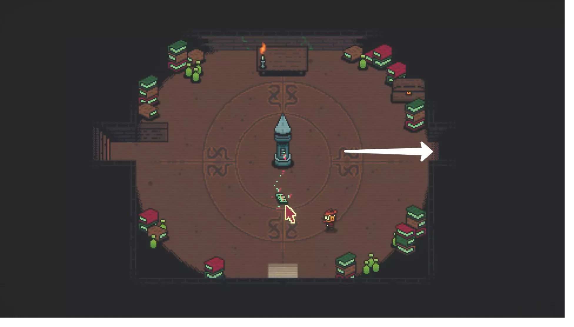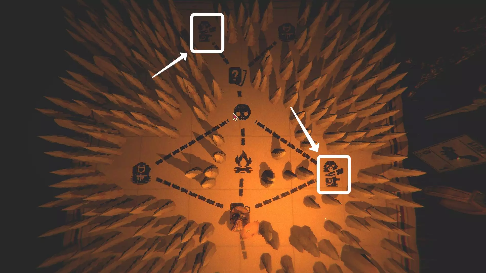 游戏处于哪个章节?在第三章。 难度在哪里? 要从商人那里获得卡牌,需要收集5张毛皮,它们和商人本身一样都藏在秘密地点,所以很容易错过。 获取奖励的策略 1. 在哪里找到商人? 要解锁商人,我们需要到达【炫目堡垒】传送门(在奥潘基 boss 附近),然后从这个界面出发:向上,向左,之后点击房间里的锁。地图上会为你打开一扇真实的门,当你从桌子旁站起来时,它就在你的左边。在那里你会找到全息长凳。