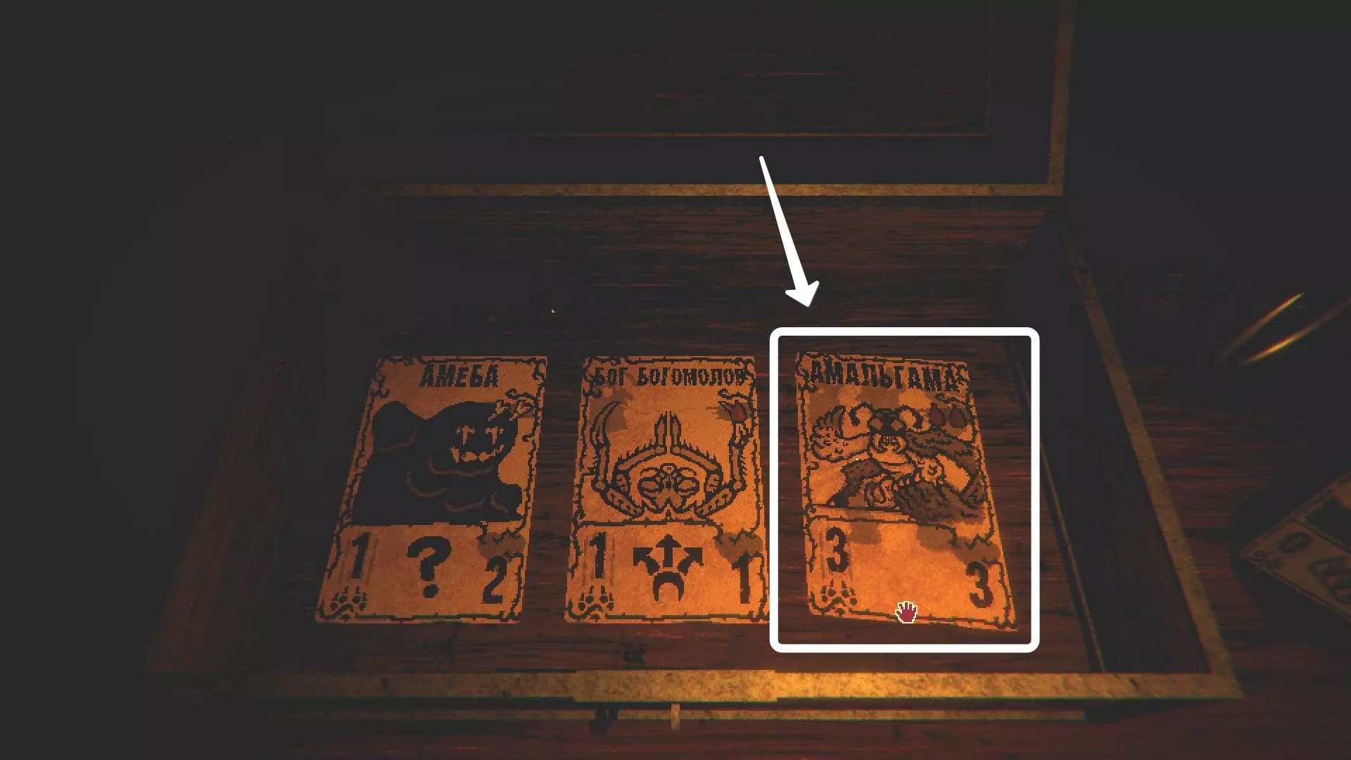 游戏的哪个章节?在第二章。 难度在哪里? 部分卡牌不在卡包中,需要单独获取。你可能会缺少箔卡来完成这个成就。 获取成就的策略 《邪恶冥刻》原版共有96张卡牌。其中大部分可以在卡包中找到或在商店购买。然而,这其中有4张卡牌无法通过这种方式获得。幸运的是,关于如何获取它们,Csandro 已经在第二章的【特殊卡牌】部分进行了说明。 至于文件卡牌不足的问题,可以通过无限循环轻松解决,我会在本指南的【如何获取成就 "Забавы Дьявола"】部分进行说明。当你在一场战斗中造成 666 点伤害后,你就不会再缺少文件卡牌了。提示:如果你不知道还缺少哪些卡牌,可以前往魔法师的商人处,他旁边有一本书,里面收录了你目前拥有的所有卡牌。