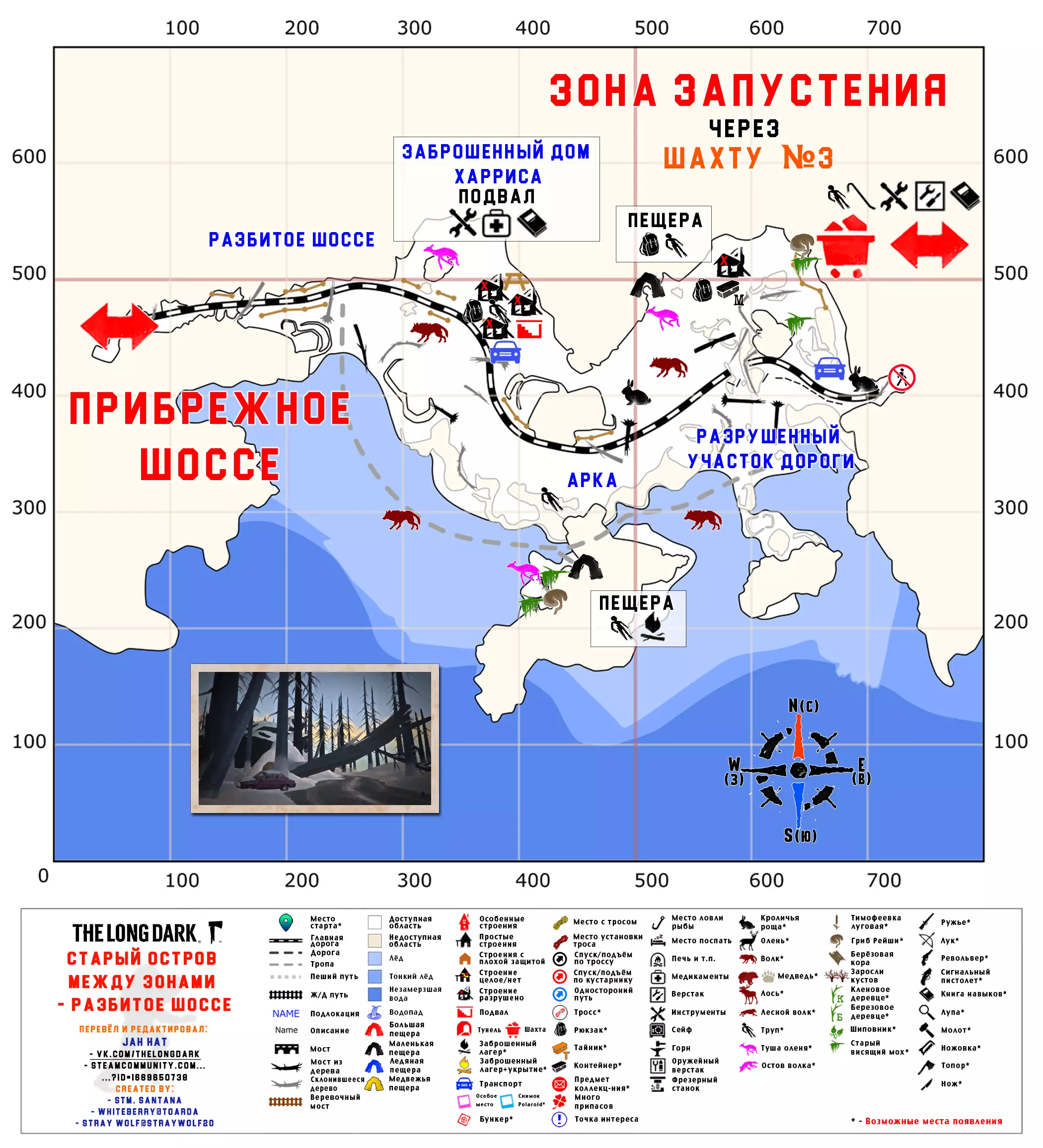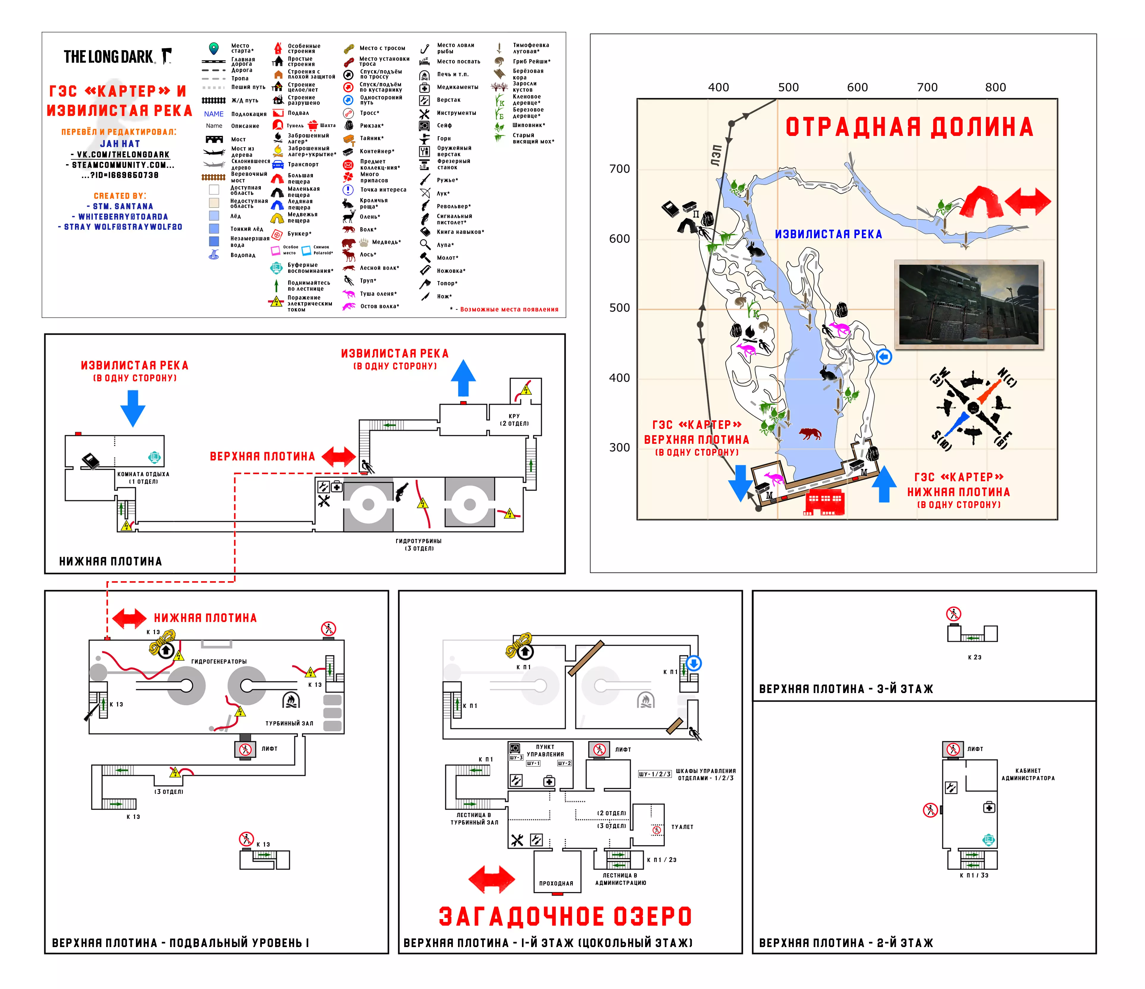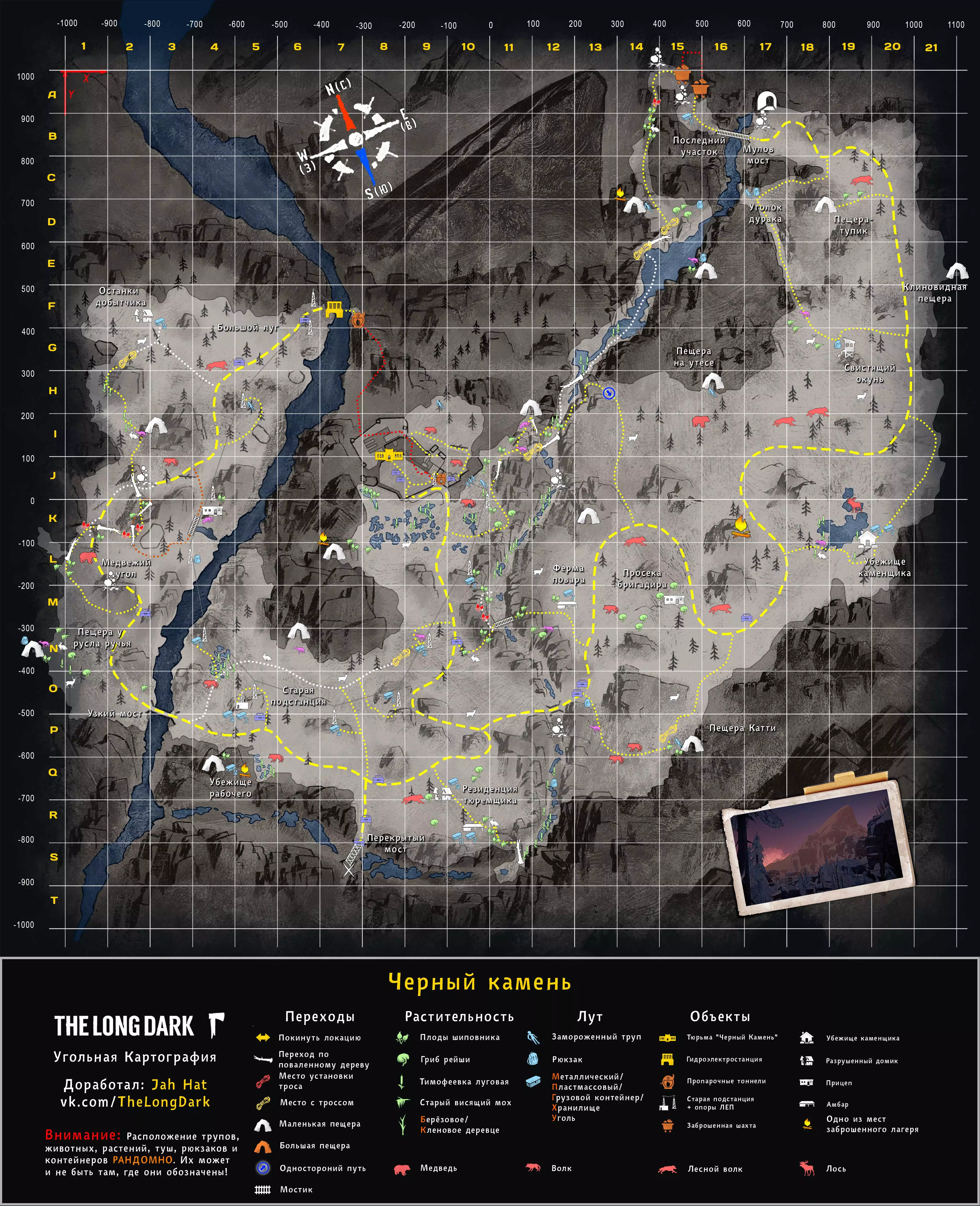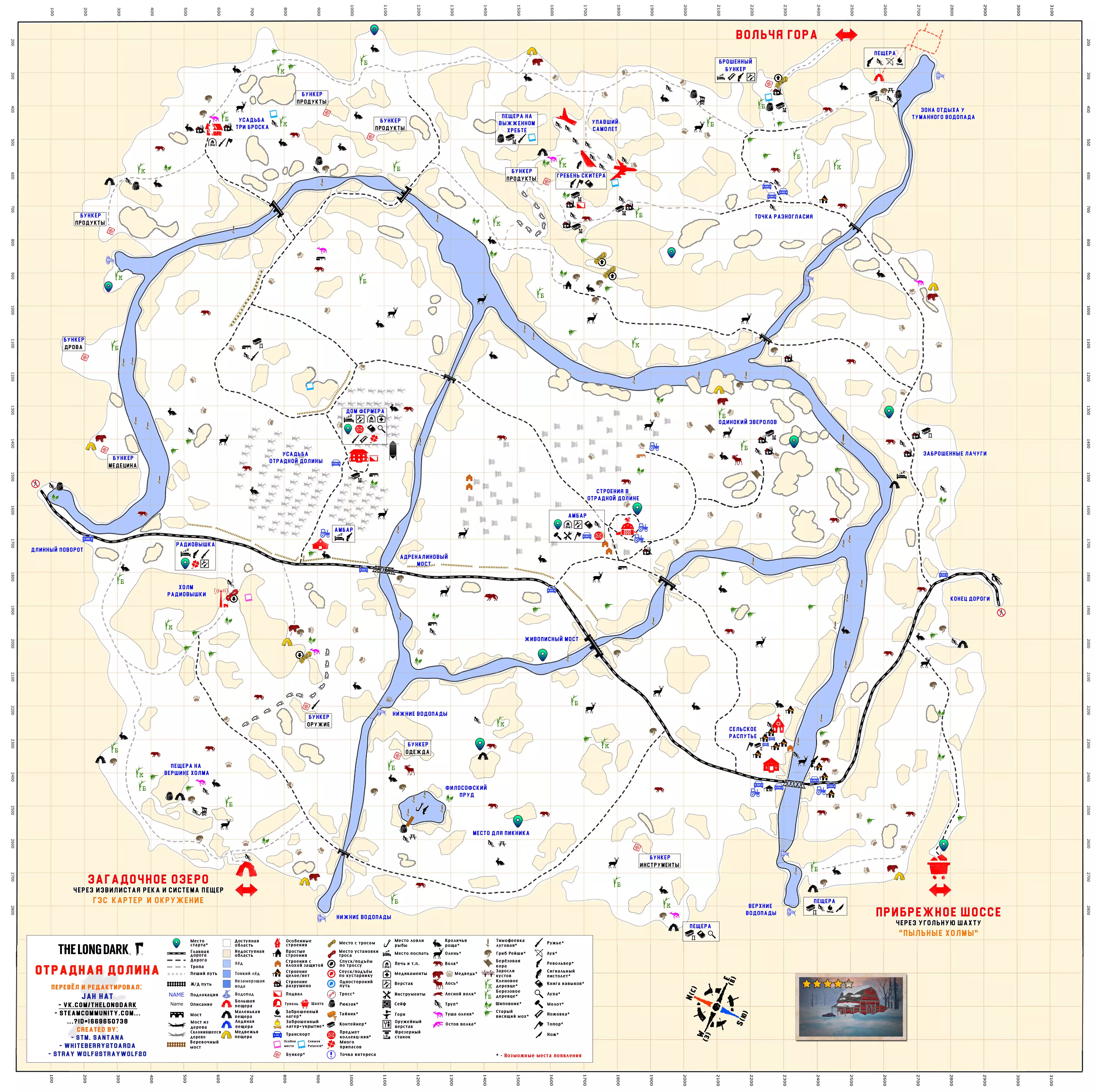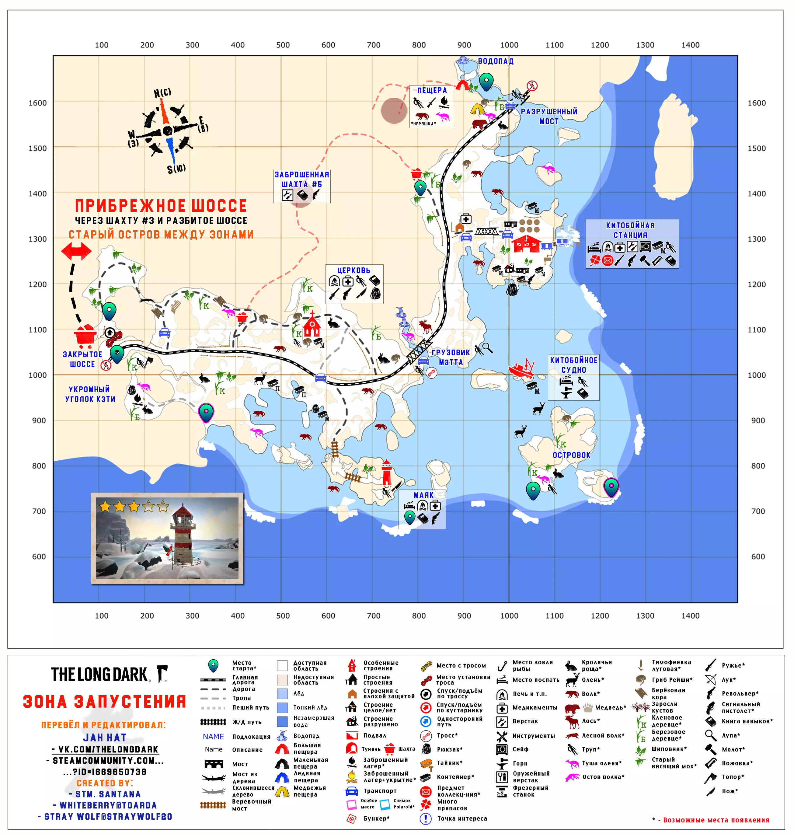 更新日志 04.03.2017 添加地图【孤独沼泽】。该地图没有翻译,也没有结局。 09.03.2018 添加地图【神秘湖铁路】【米尔顿】。根据作者当前版本更新地图【孤独沼泽】。根据各章节的时效性和内容修改标题。将【作者的话】板块移至指南顶部,以减少评论区的提问数量。 06.12.2018年更新内容: 1. 将【神秘湖泊】地图替换为维基百科上的更新版本。 2. 将【米尔顿】地图替换为新版本(Whiteberry / The Riddler)。 3. 将【神秘湖泊铁路】地图替换为新版本(Stray Wolf / Riddler)。 4. 将【孤独沼泽】地图替换为翻译版本(来自维基百科)。 5. 添加【静河谷】地图(Whiteberry / Stray Wolf / Riddler)。 6. 修改了各部分的描述(目前已知并非所有地图都为最新版本),并更新了指南说明。 22.01.2020年添加了地图【苍白海湾】(Whiteberry / YusufpawFA / Riddler)。 2020年5月26日将【发射区】【区域间旧岛】【滨海公路】【峡谷】【蜿蜒河流】【宜人山谷】【孤独沼泽】等地图替换为带有【石头堆】收集标记的同类地图。 在【神秘湖】【狼山】和【神秘湖铁路】区域中添加了指向带有【石头堆】收集标记地图的链接。因为标签是为经过重大改动的旧版本地图制作的。 2020年12月19日:添加地图【灰烬峡谷】(YusufpawFA / Jahhat) 2021年1月23日:将地图【孤独沼泽】替换为轮廓版(Stray Wolf / Jahhat) 2021年2月1日:更新指南封面,添加地图作者信息,将【灰烬峡谷】的煤炭版本替换为轮廓版(YusufpawFA / Jahhat) 2021年2月8日:2021年,将“神秘湖铁路”替换为轮廓式的“破损铁路”(由YusufpawFA和Jahhat制作)。更新了链接和描述。 2021年5月21日,将“峡谷”地图替换为轮廓式地图(由Stray Wolf、Stm.Santana、Jahhat制作)。 2021年10月26日,指南已完全更新: 1. 编辑了“标题栏”——填写了指向作者、翻译者、指南的最新链接。 2. 编辑了“作者的话”部分。 3. 将所有地图替换为最新版本。