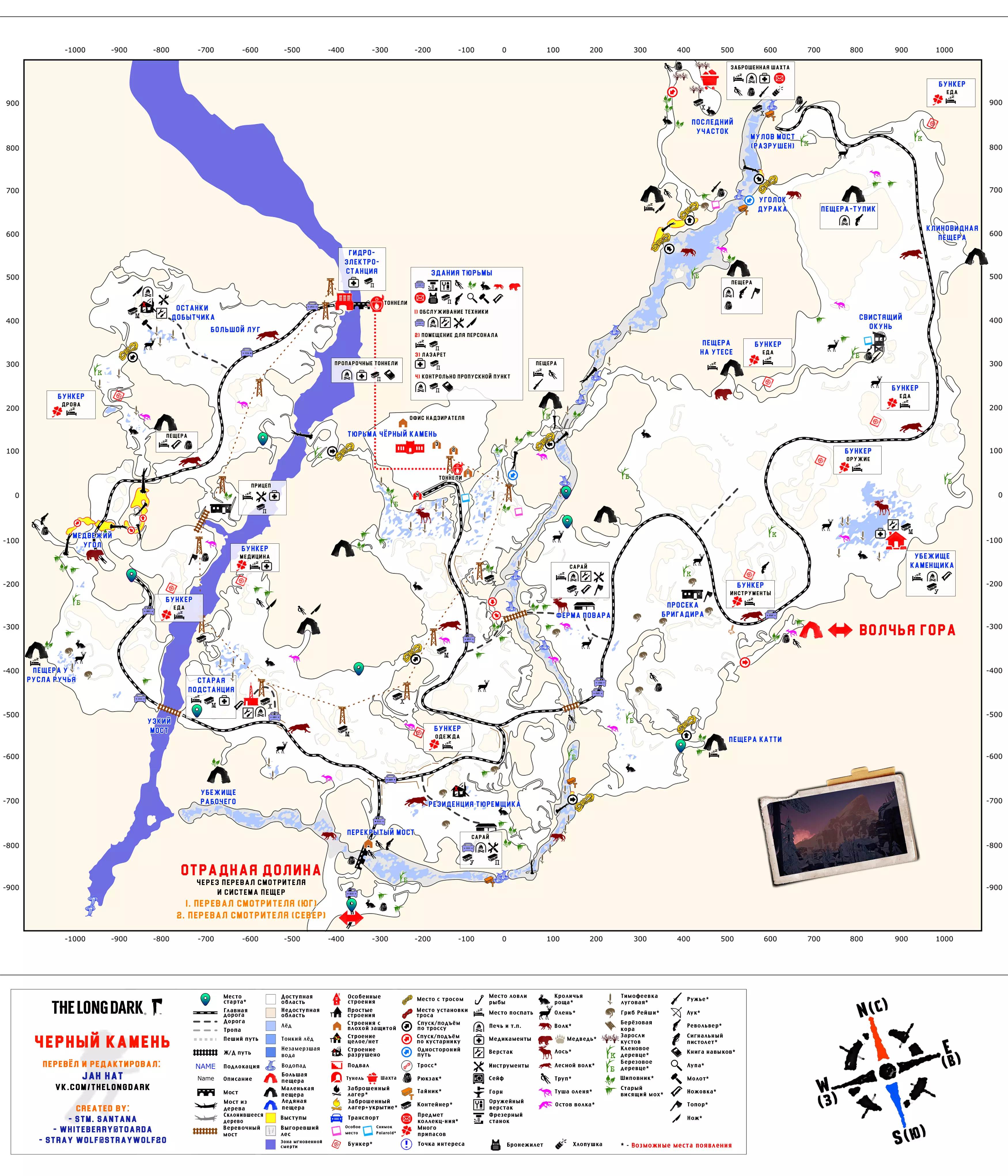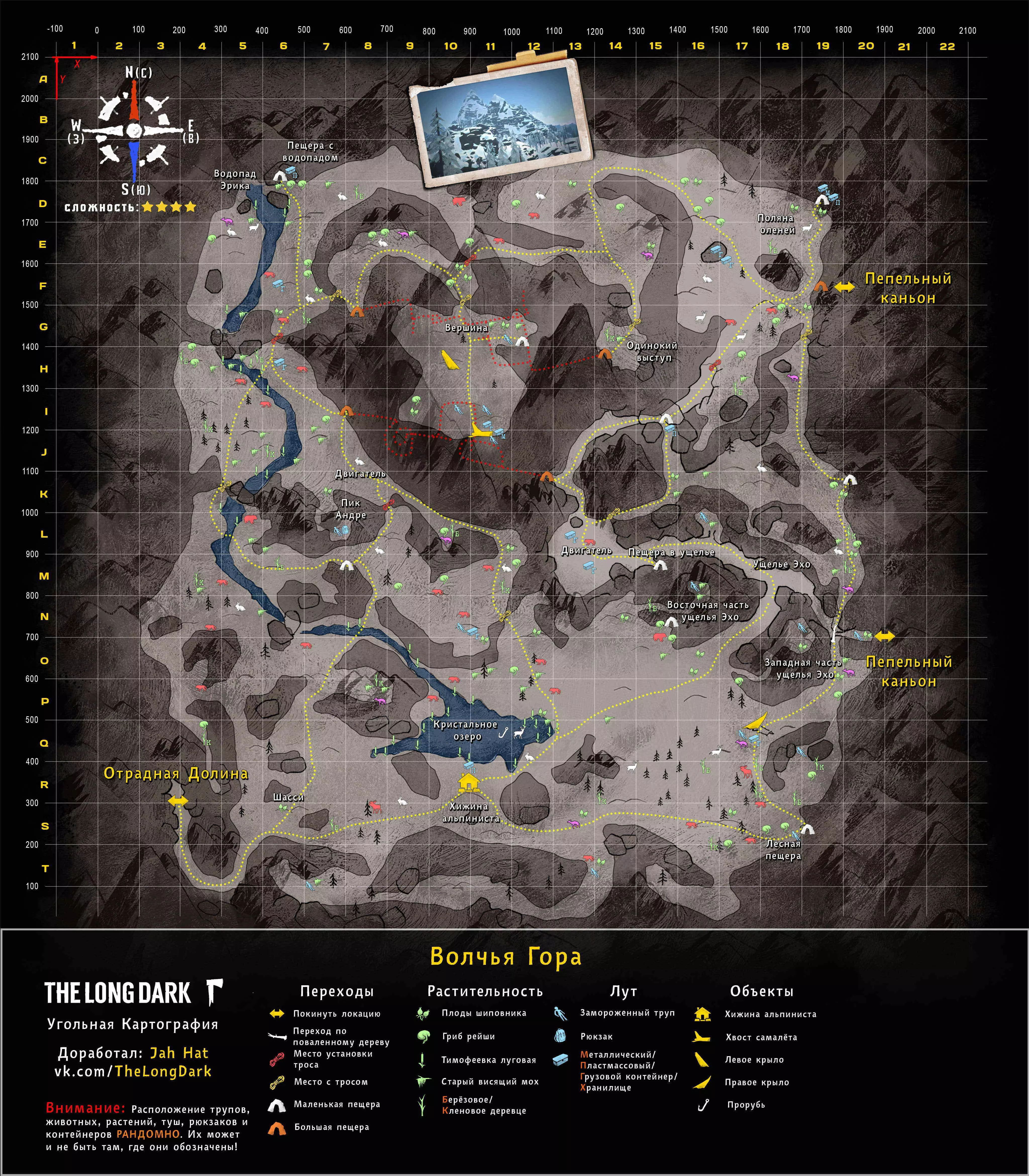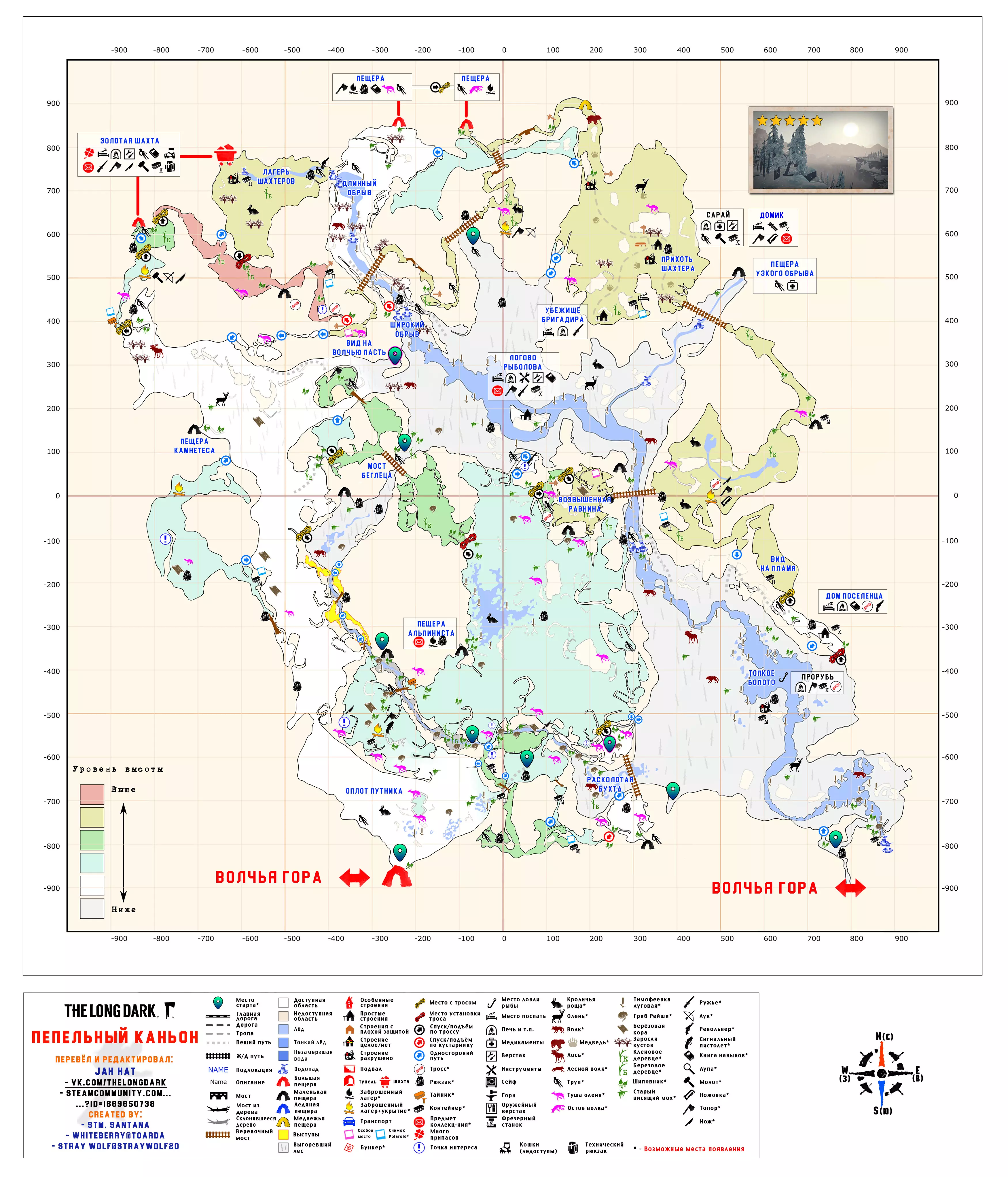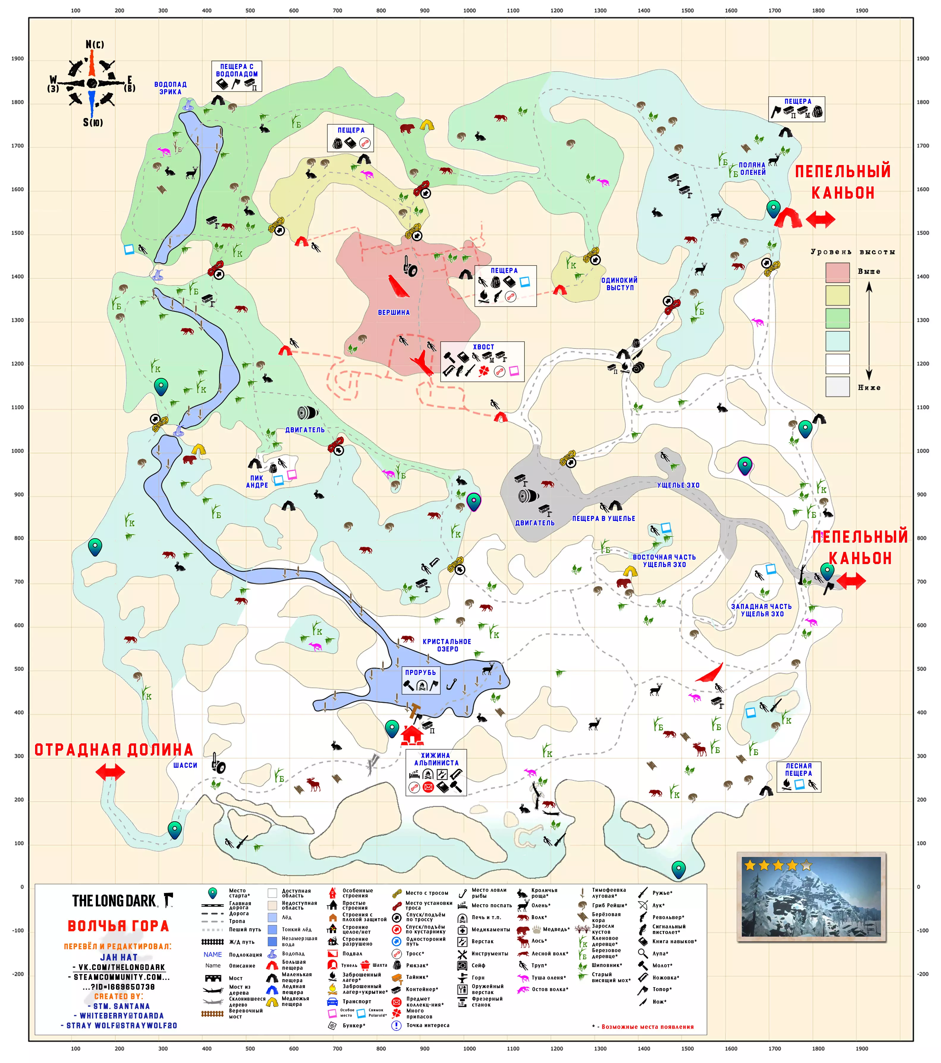 更新日志 04.03.2017 添加地图【孤独沼泽】。该地图没有翻译,也没有结局。 09.03.2018 添加地图【神秘湖铁路】【米尔顿】。根据作者当前版本更新地图【孤独沼泽】。根据各章节的时效性和内容修改标题。将【作者的话】板块移至指南顶部,以减少评论区的提问数量。 06.12.2018年更新内容: 1. 将【神秘湖泊】地图替换为维基百科上的更新版本。 2. 将【米尔顿】地图替换为新版本(Whiteberry / The Riddler)。 3. 将【神秘湖泊铁路】地图替换为新版本(Stray Wolf / Riddler)。 4. 将【孤独沼泽】地图替换为翻译版本(来自维基百科)。 5. 添加【静河谷】地图(Whiteberry / Stray Wolf / Riddler)。 6. 修改了各部分的描述(目前已知并非所有地图都为最新版本),并更新了指南说明。 22.01.2020年添加了地图【苍白海湾】(Whiteberry / YusufpawFA / Riddler)。 2020年5月26日将【发射区】【区域间旧岛】【滨海公路】【峡谷】【蜿蜒河流】【宜人山谷】【孤独沼泽】等地图替换为带有【石头堆】收集标记的同类地图。 在【神秘湖】【狼山】和【神秘湖铁路】区域中添加了指向带有【石头堆】收集标记地图的链接。因为标签是为经过重大改动的旧版本地图制作的。 2020年12月19日:添加地图【灰烬峡谷】(YusufpawFA / Jahhat) 2021年1月23日:将地图【孤独沼泽】替换为轮廓版(Stray Wolf / Jahhat) 2021年2月1日:更新指南封面,添加地图作者信息,将【灰烬峡谷】的煤炭版本替换为轮廓版(YusufpawFA / Jahhat) 2021年2月8日:2021年,将“神秘湖铁路”替换为轮廓式的“破损铁路”(由YusufpawFA和Jahhat制作)。更新了链接和描述。 2021年5月21日,将“峡谷”地图替换为轮廓式地图(由Stray Wolf、Stm.Santana、Jahhat制作)。 2021年10月26日,指南已完全更新: 1. 编辑了“标题栏”——填写了指向作者、翻译者、指南的最新链接。 2. 编辑了“作者的话”部分。 3. 将所有地图替换为最新版本。