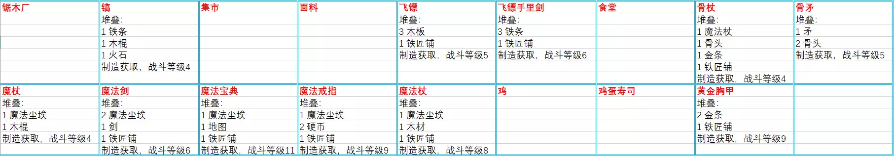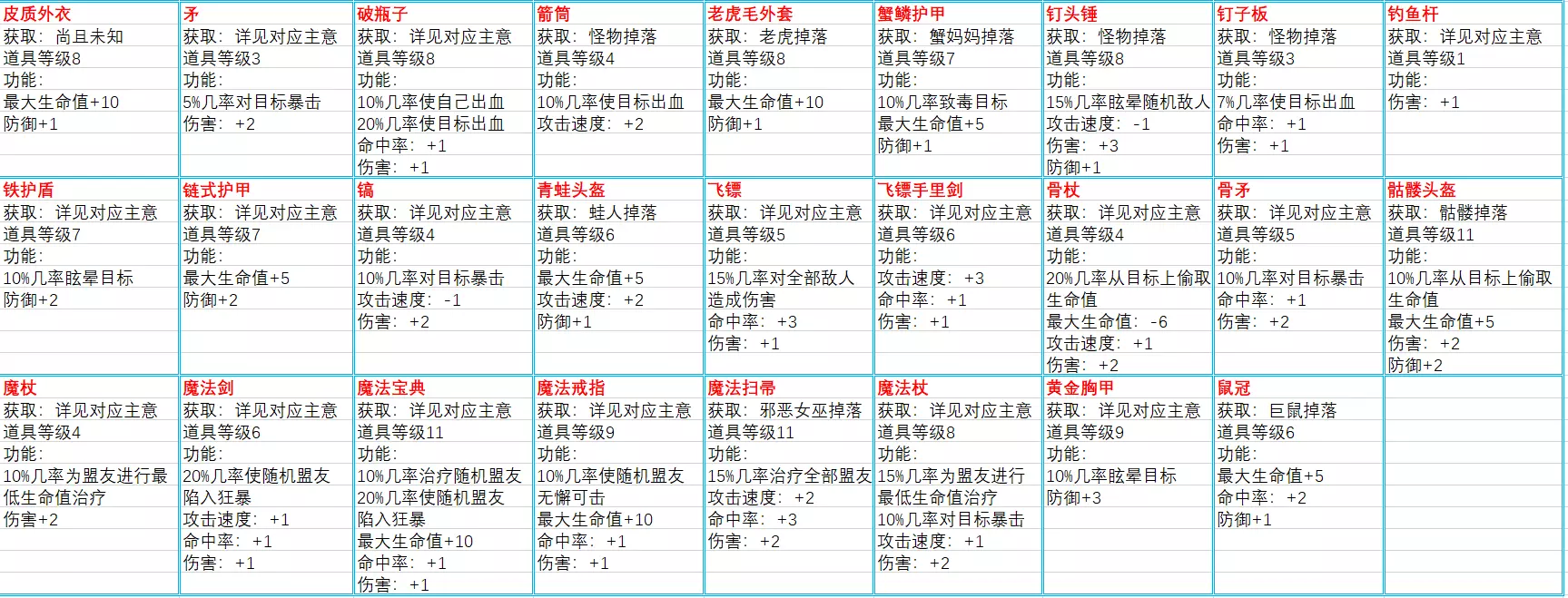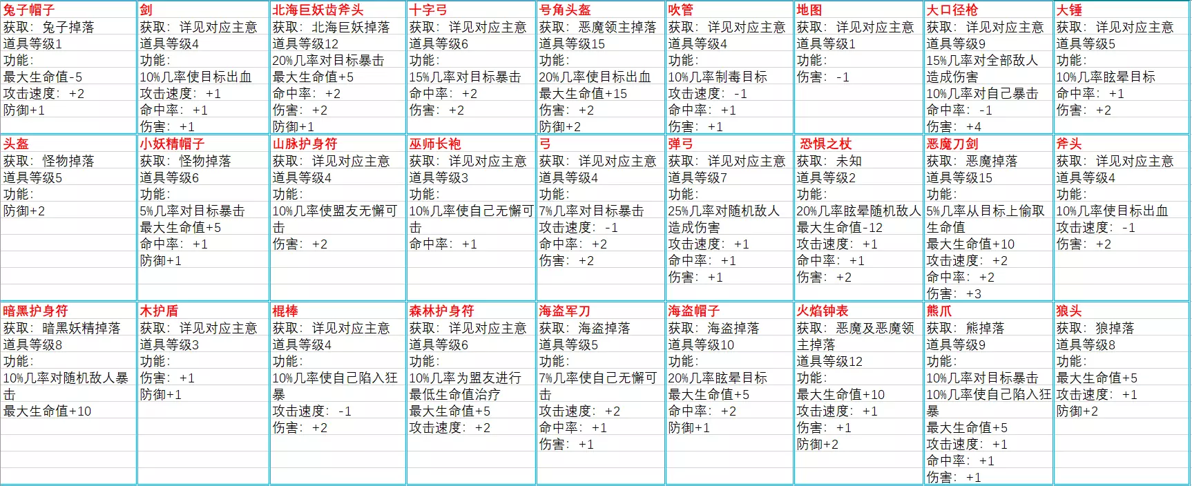 装备(统共53条,该条目为更新后新增条目)