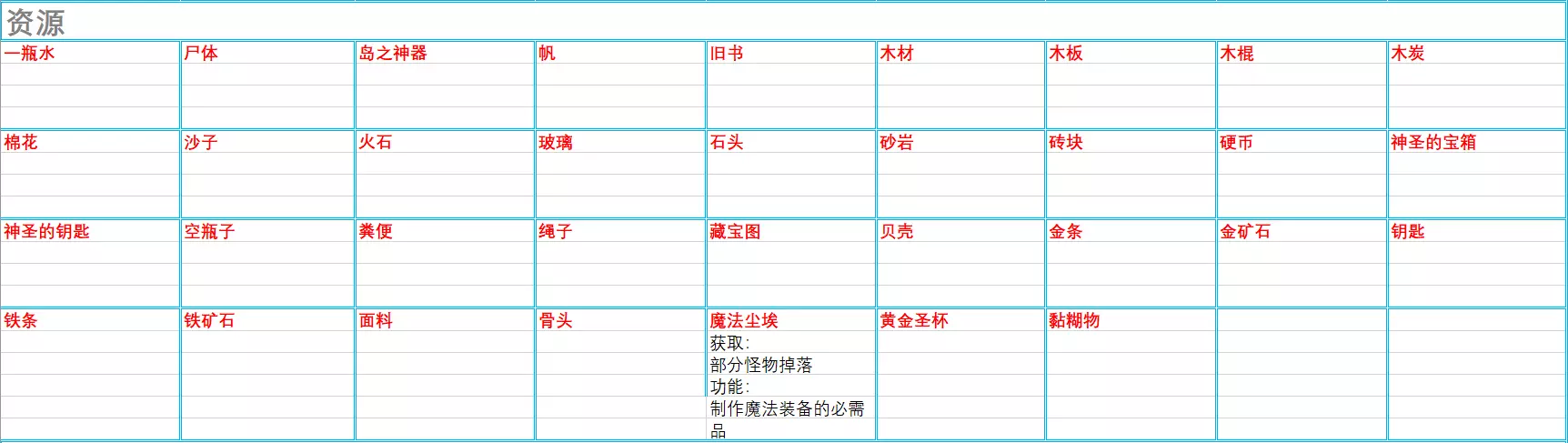 资源(共34条,在海岛版本的47条基础上进行了新增与删改)