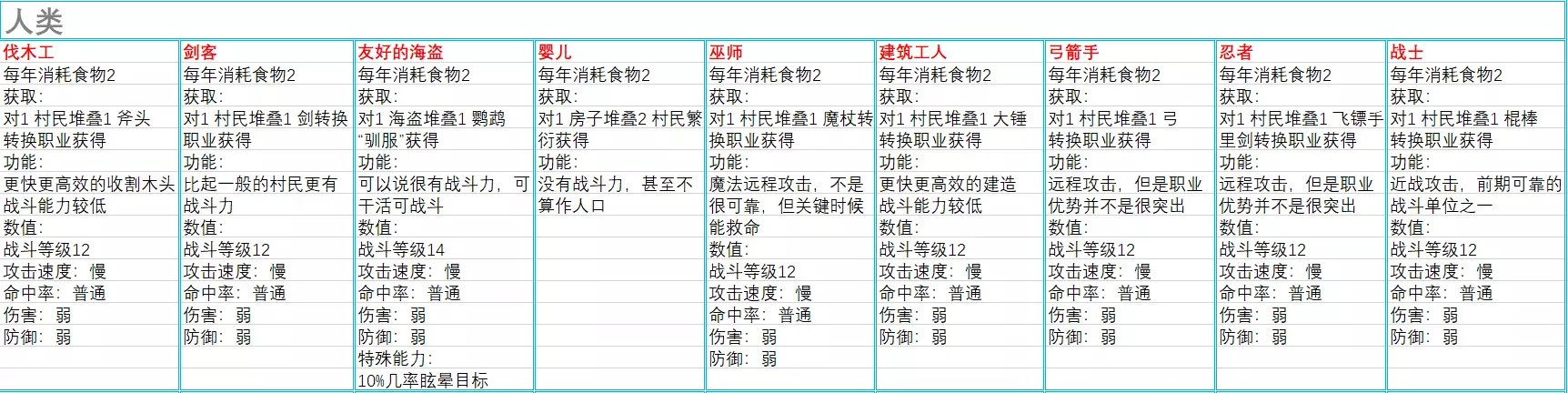 人类(共17条,在海岛版本9条的基础上新增8条)