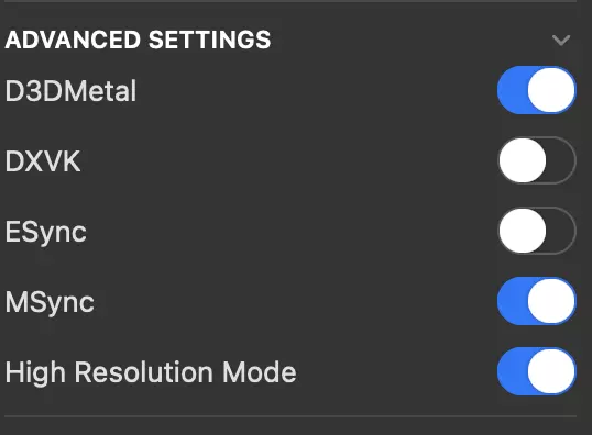 在你的Steam容器(bottle)的高级设置中,应该有一些用于为Apple Silicon Mac启用图形功能的选项。为获得最佳体验,请启用以下选项: D3DMetal MSync 高分辨率模式 登录并下载游戏!