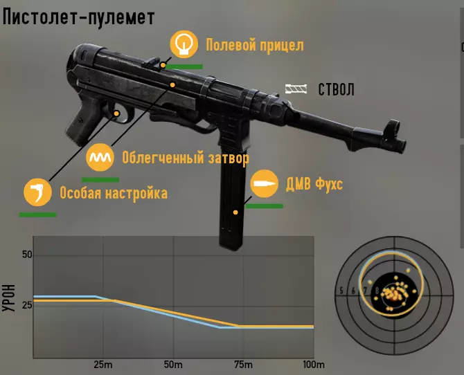 接下来是冲锋枪。 MP-40 第一种装配方案:注重射速和弹量。