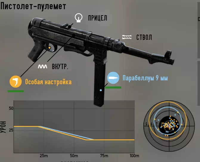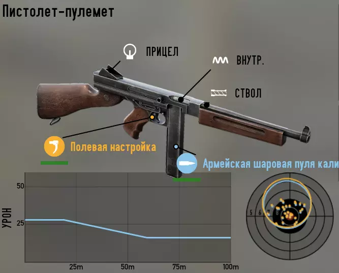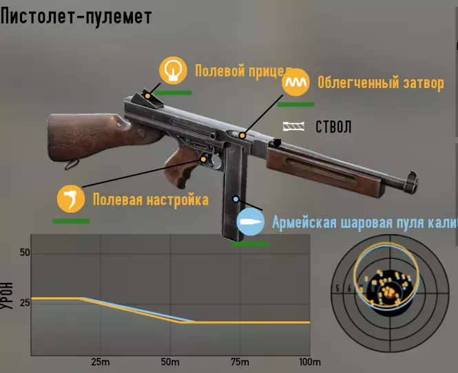 接下来 - 冲锋枪。 汤普森 第一种配置 - 最高射速。用于突击据点和近距离作战。