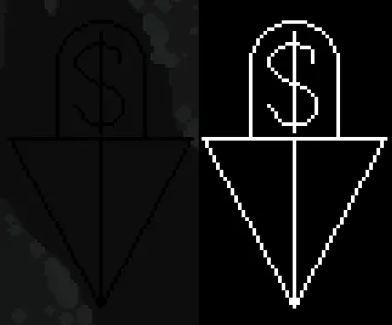 美元符号和箭头,似乎没有特别指向任何东西。在炼金术士 Boss 附近发现。