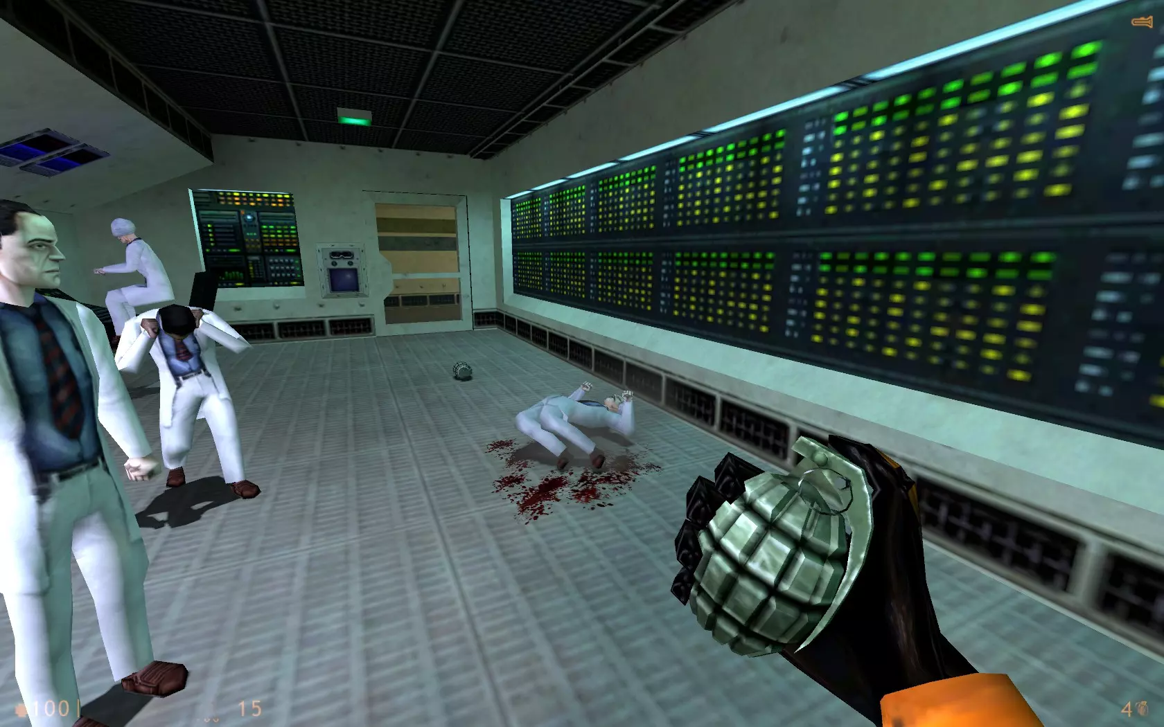 房间里现在有一枚已经激活的手榴弹,一个家伙的脸被炸得血肉模糊,而27号爱因斯坦正悬浮在椅子上方,比平时高出2.47厘米。不过好消息是,你现在扔东西的技术变得非常棒了。