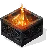 别看名字这样,其实相当明智。和上一个一样,它会削减物理属性和缩放比例,同时通过魔法增加伤害,但缩放比例更小,这意味着伤害加成也更低。不过,这件装备附带了法力值回复的能力。不过,回复速度相当一般——根据这件装备是否完全强化,每5/3秒回复1点法力值。用途:如果你需要暂时离开去喝点水、吃点东西、抽根烟,或者同时做这些事,它可以作为被动回蓝装备使用。把角色放到安全的地方,给他穿上这件装备(最好是两只手各戴一件)然后就可以离开了。 如果给盾牌附魔,情况会有所改善,因为这会提高盾牌的魔法伤害抗性。一般来说,盾牌的设计初衷就是为了不在上面镶嵌水晶宝石,因为它们的抗性加成相同,但对伤害的加成不同。 需求:巨人煤炭和水晶宝石。 火焰